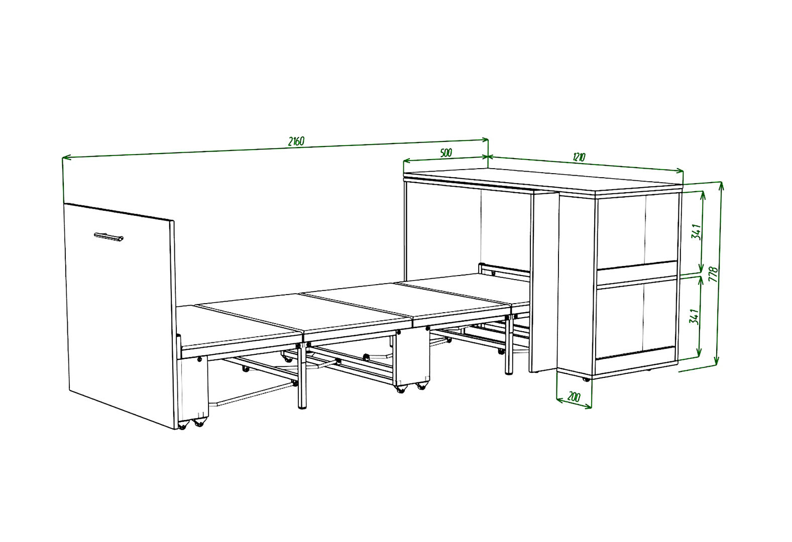 Ліжко-трансформер Knap Knap Sirim / Сірім-C1 (4 в 1) 80х200 см зі столом та полицями, венге