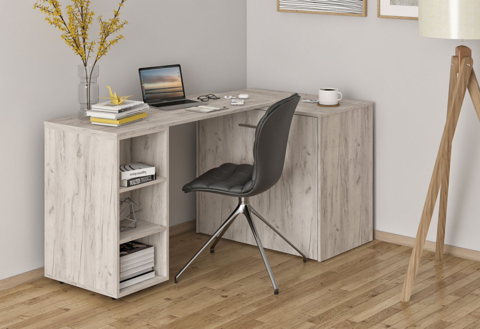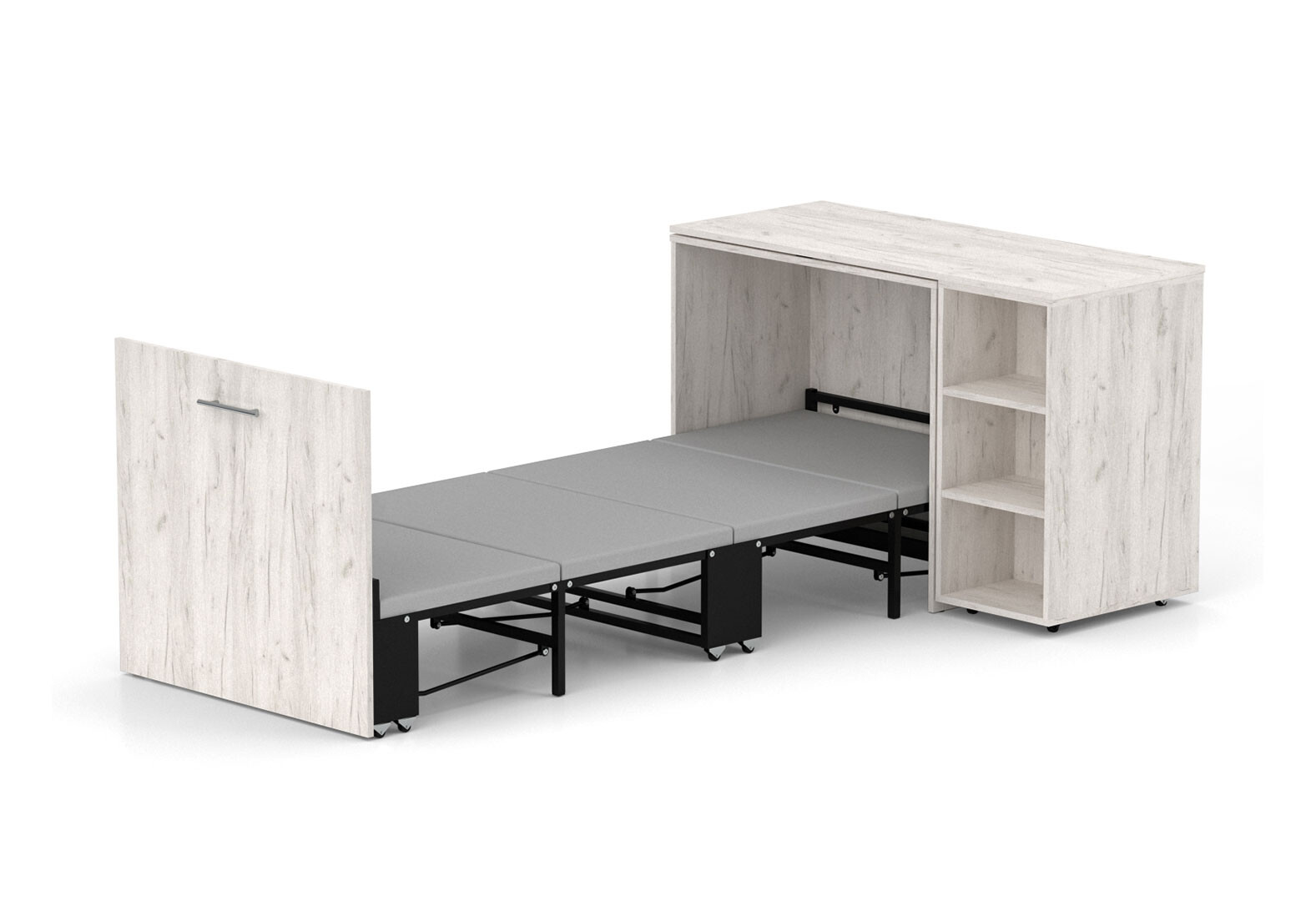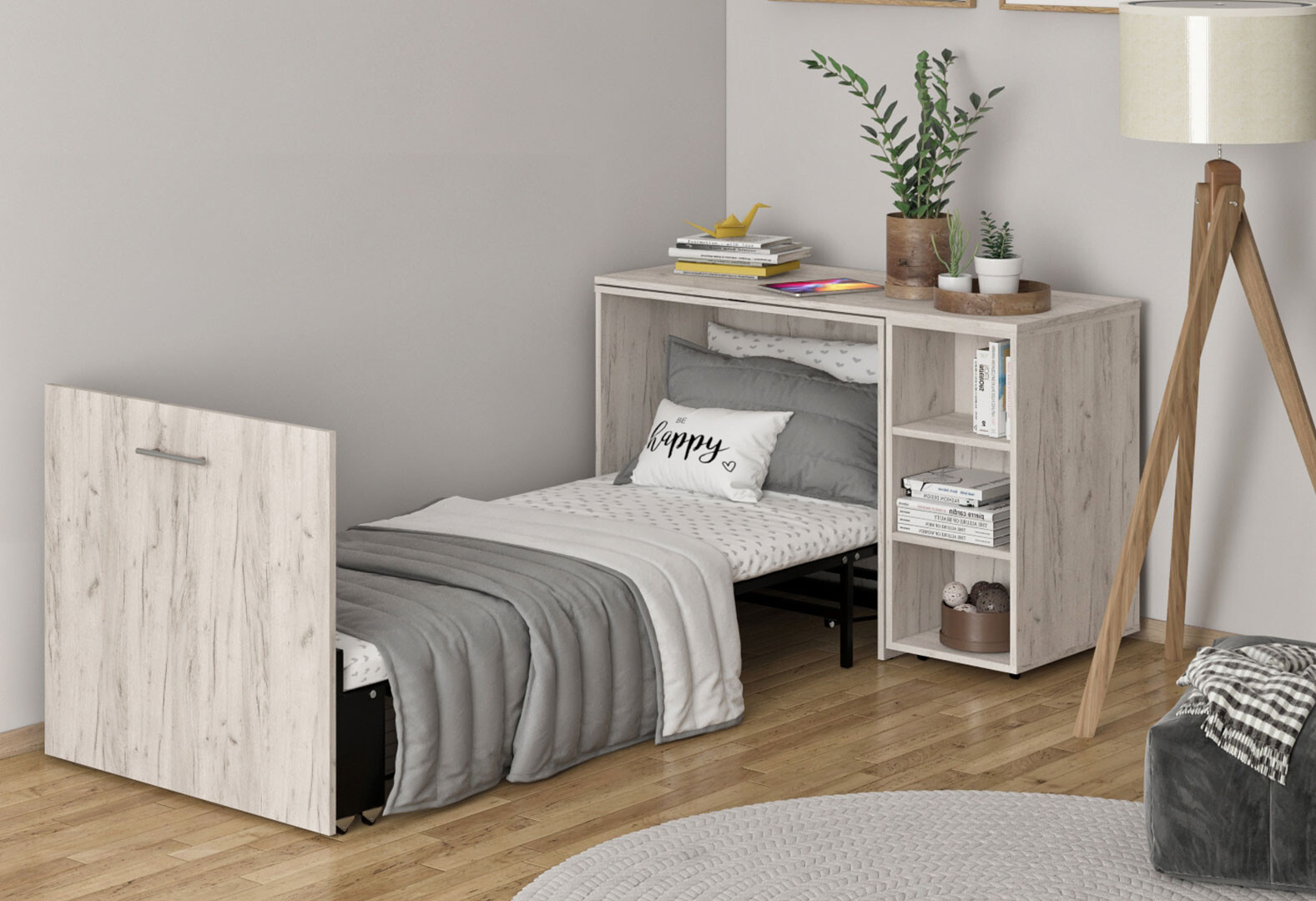 Зображення 4 - Ліжко-трансформер Knap Knap Sirim / Сірім-C2 (4 в 1) 80х200 см зі столом та полицями, дуб крафт білий