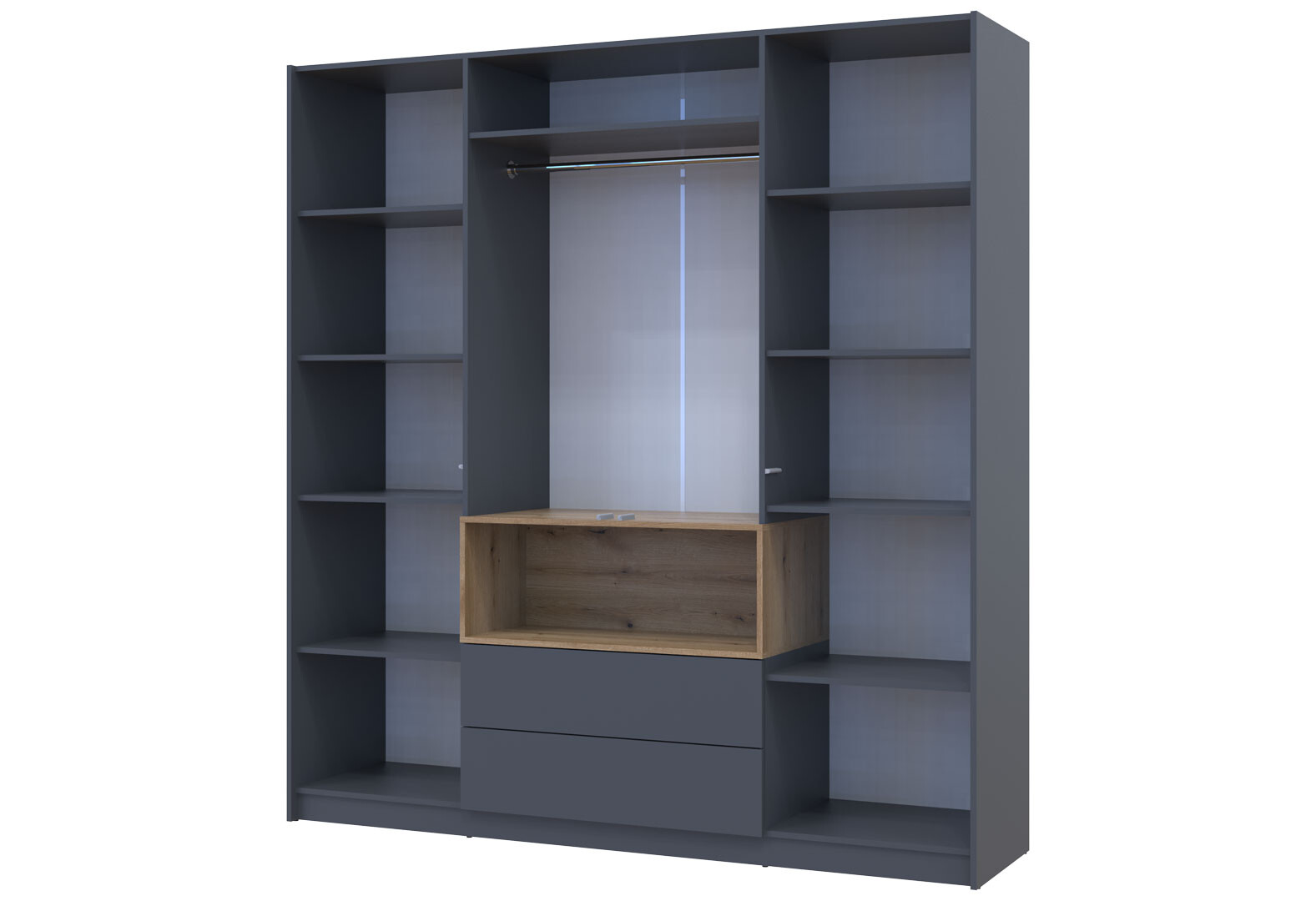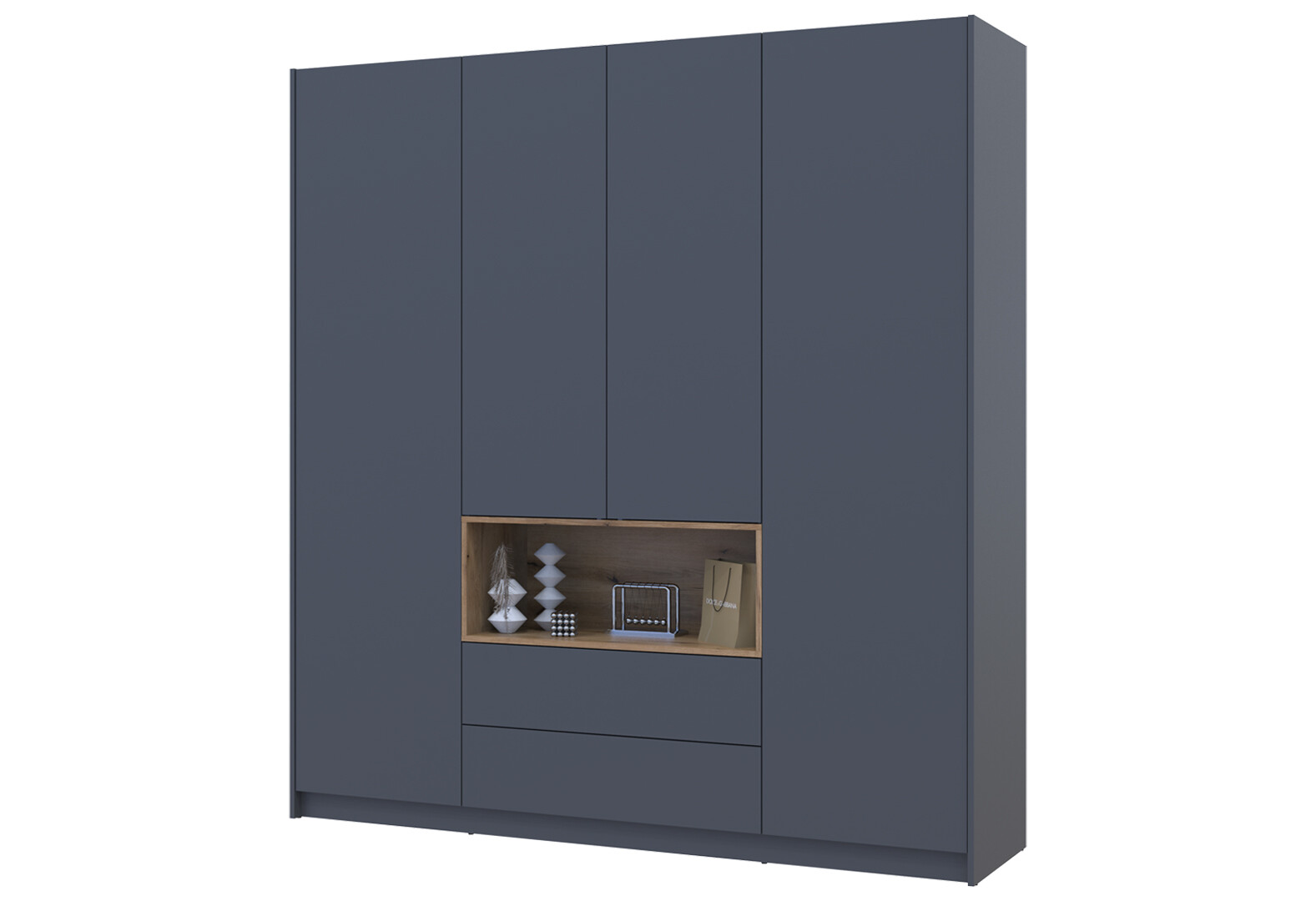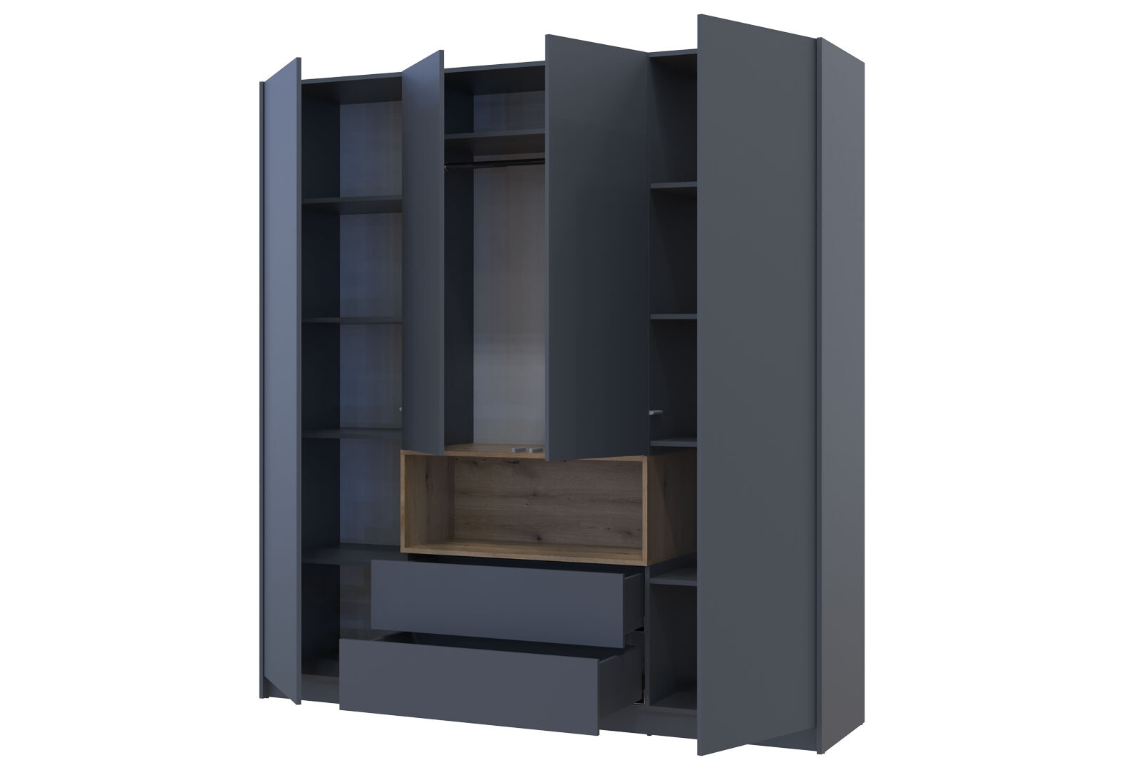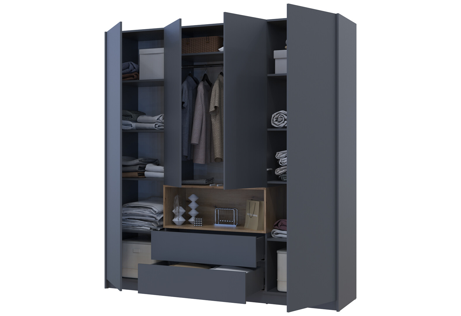 Шафа Doros Дейл 4-дверна з нішею та 2 шухлядами 206 см, Графіт / Дуб Евок