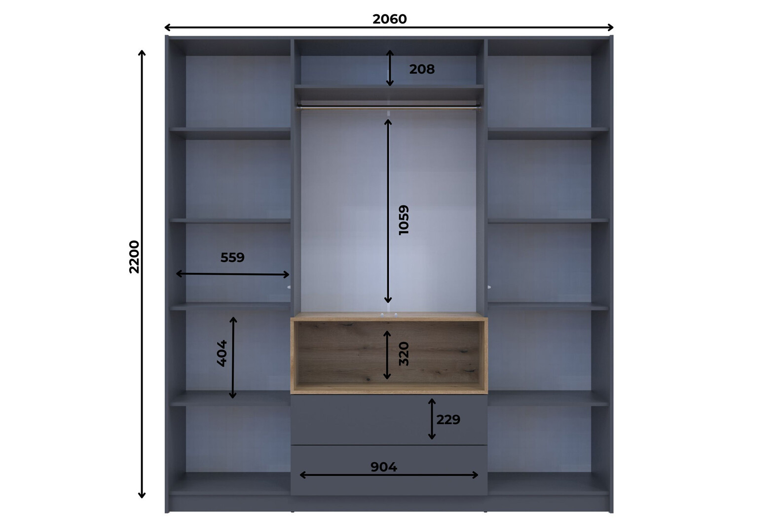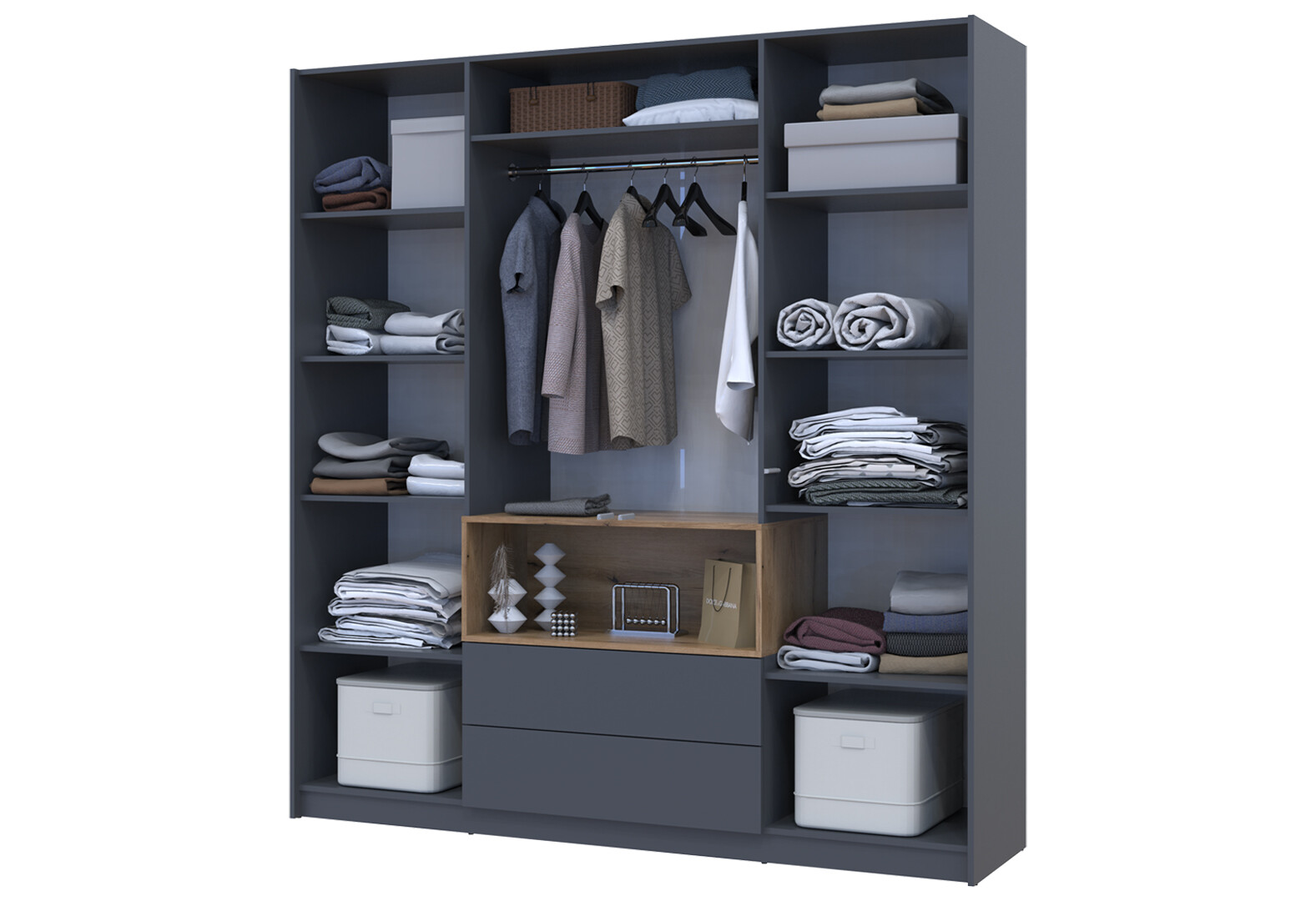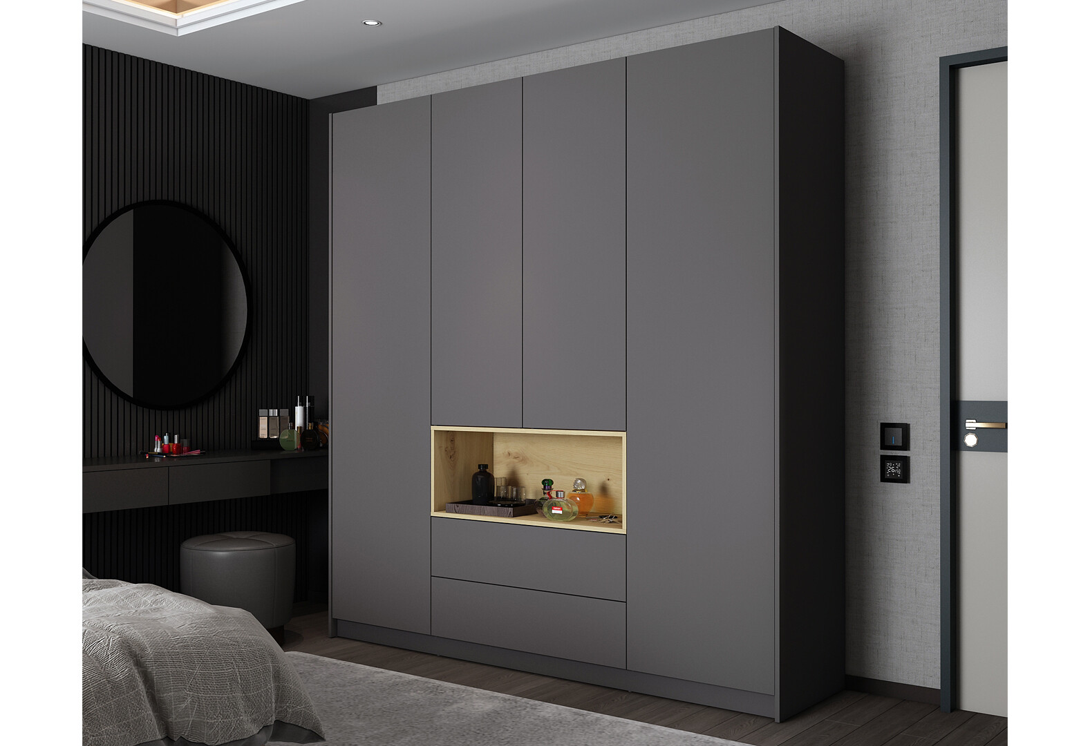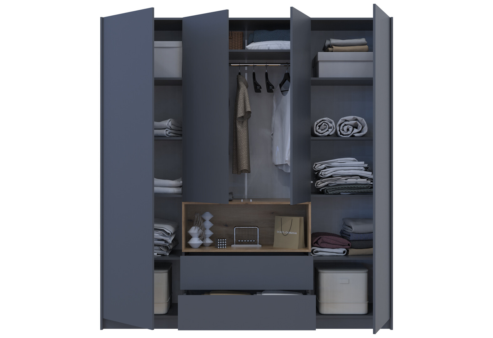 Шафа Doros Дейл 4-дверна з нішею та 2 шухлядами 206 см, Графіт / Дуб Евок