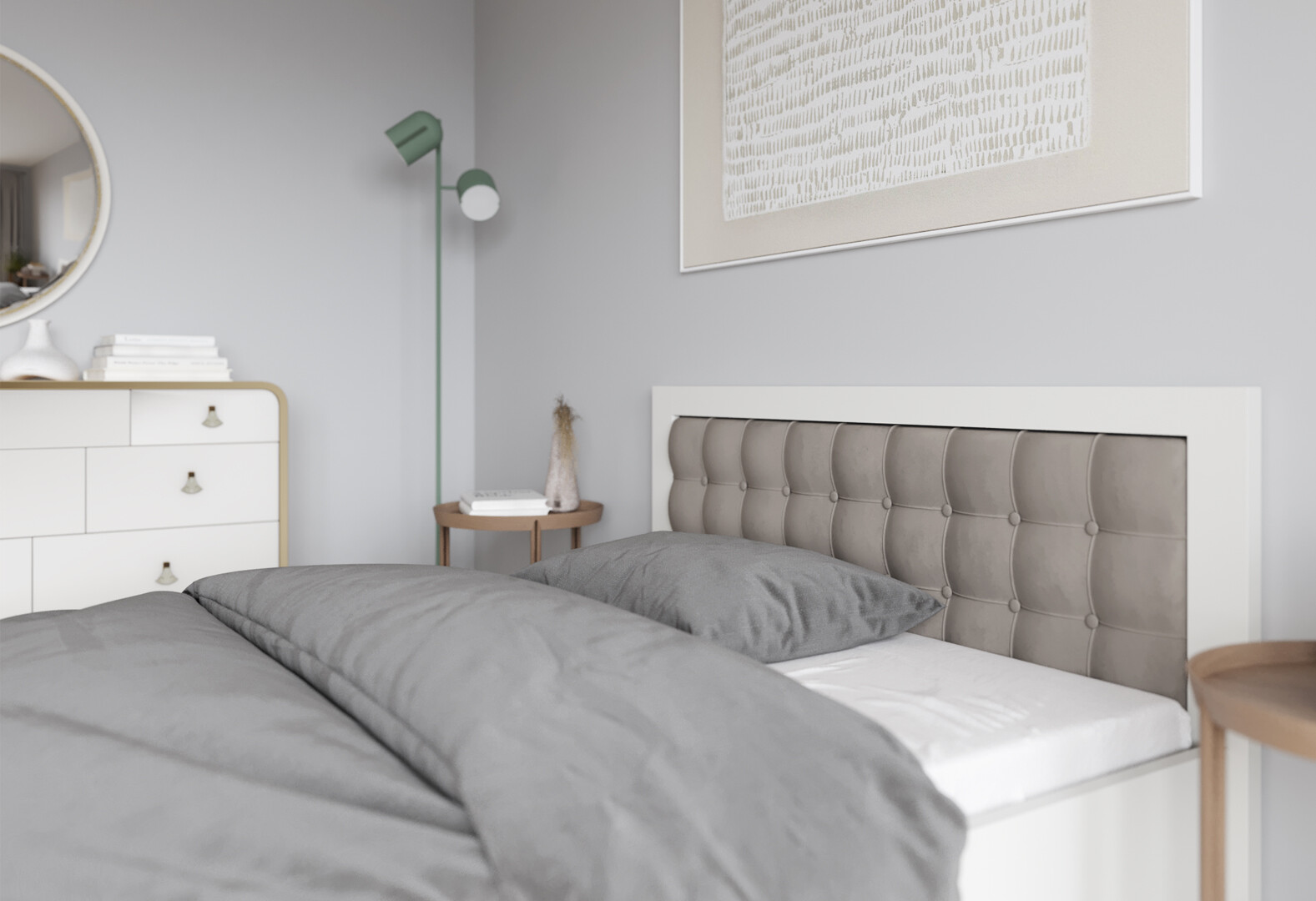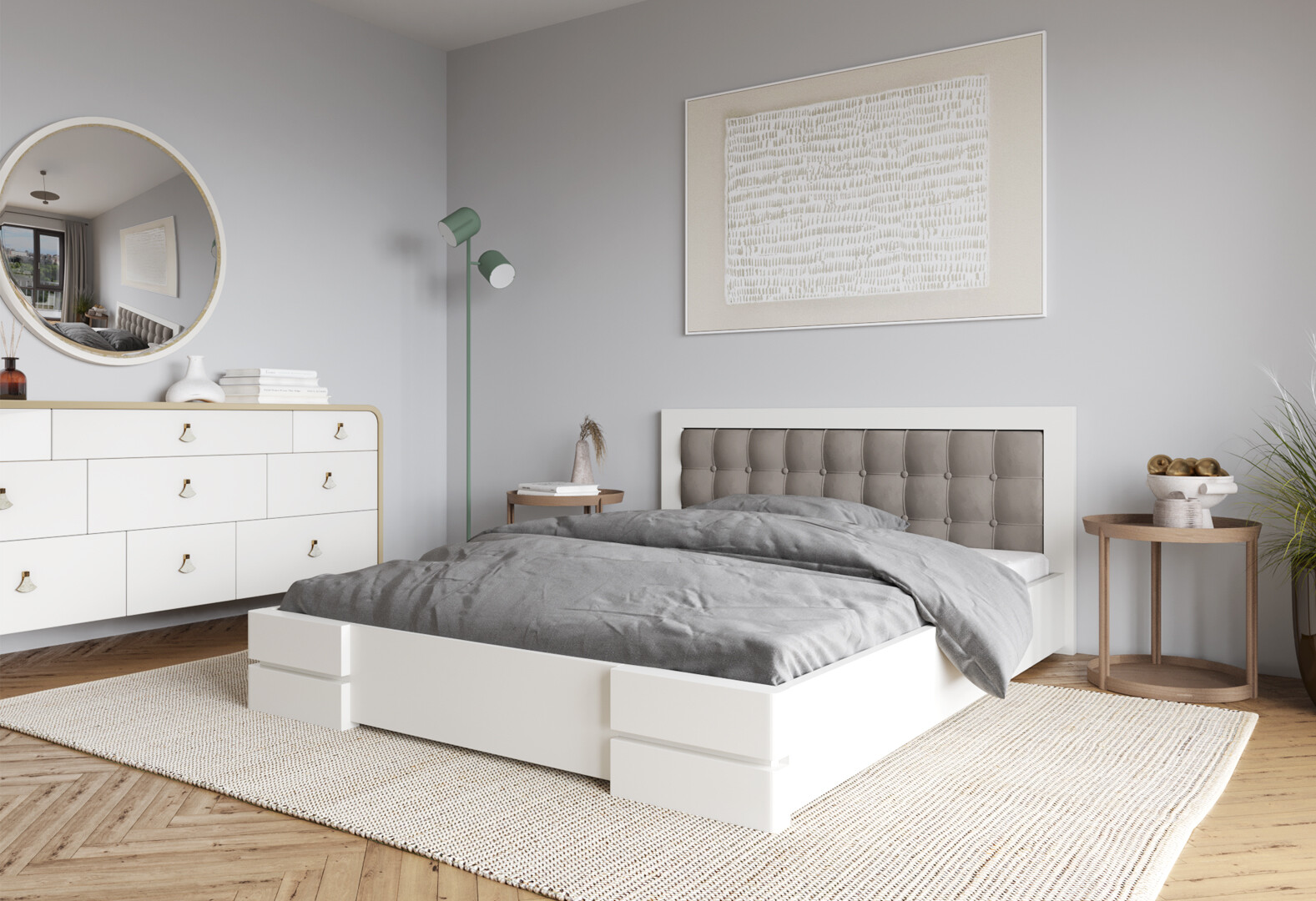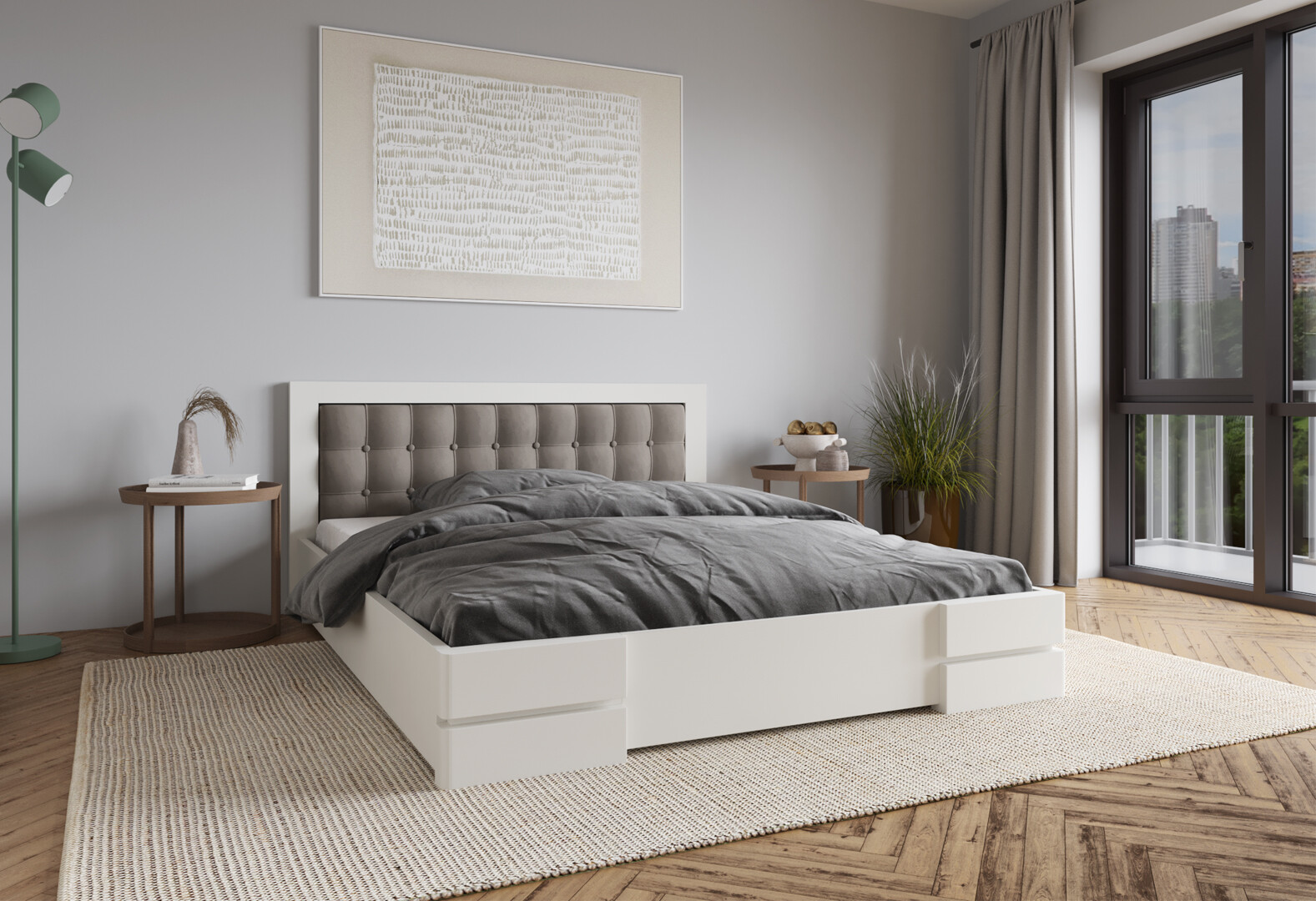 Ліжко Arbor Drev Регіна 160 см прошивка узголів'я квадрат, тк. Лагуна 08, біле, сосна