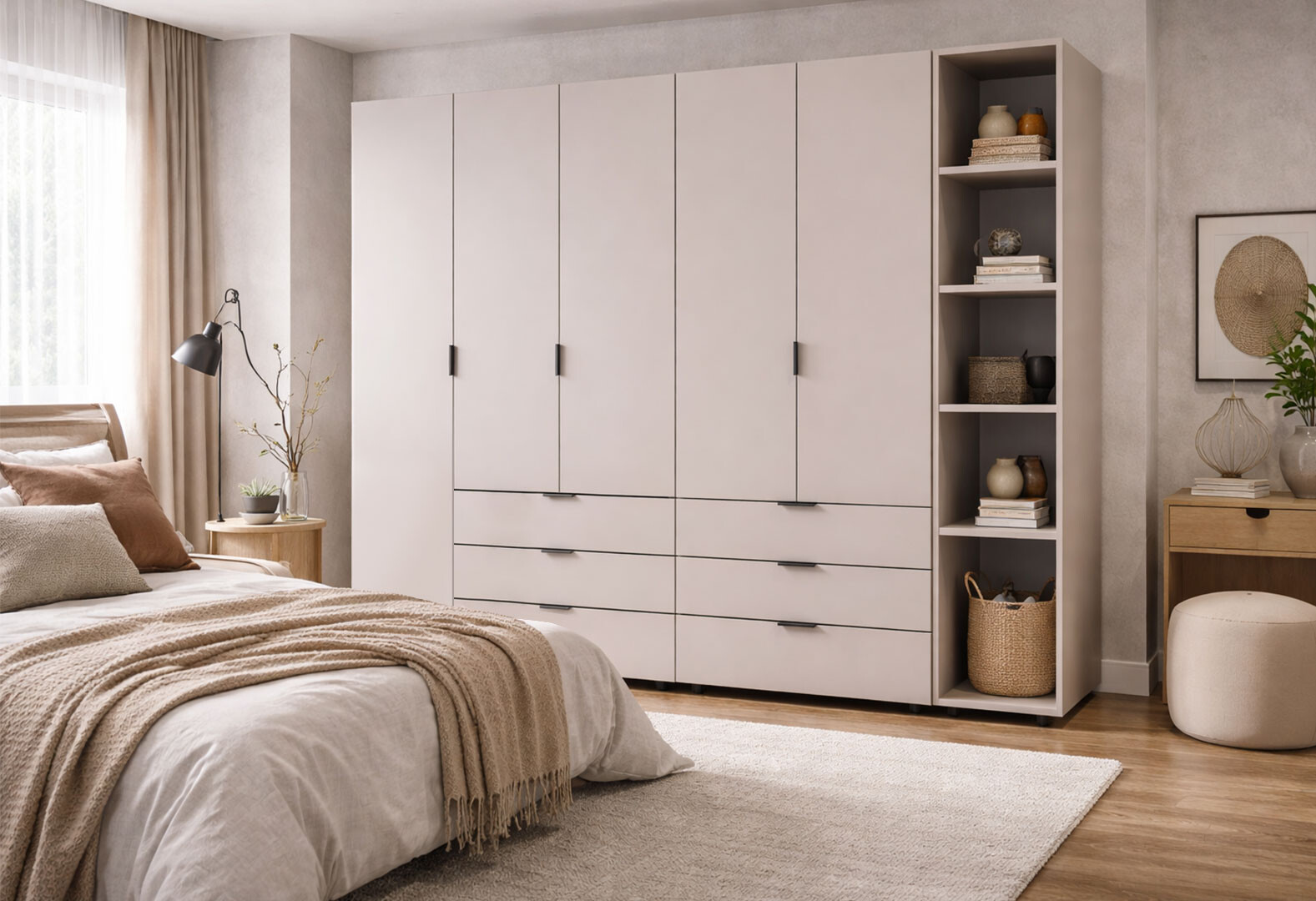Шафа Doros Гелар ДСП 2- та 3-дверна з шухлядами та етажеркою 232 см Кашемір