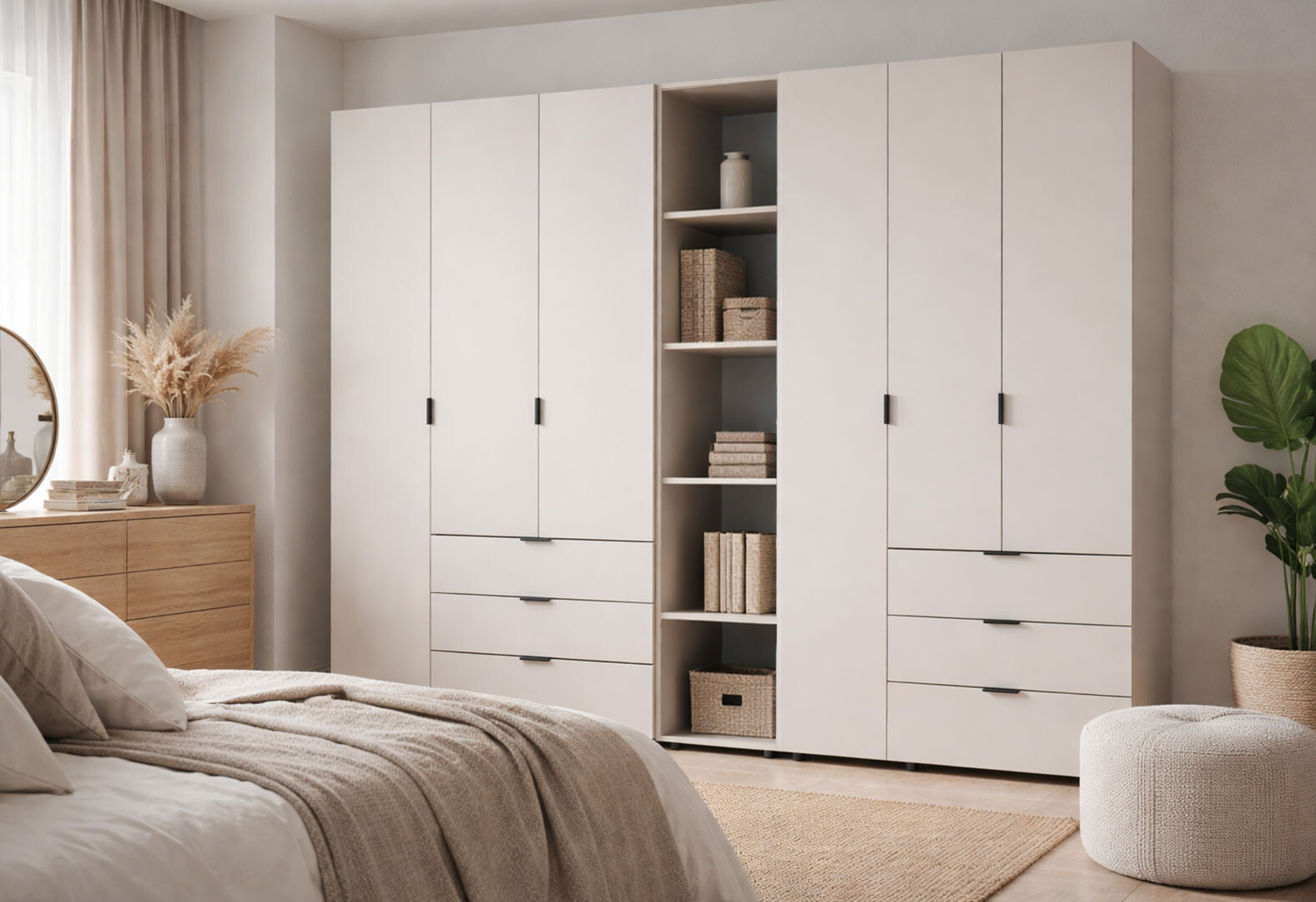 Шафа Doros Гелар ДСП дві 3-дверні з шухлядами та етажеркою 271 см Кашемір
