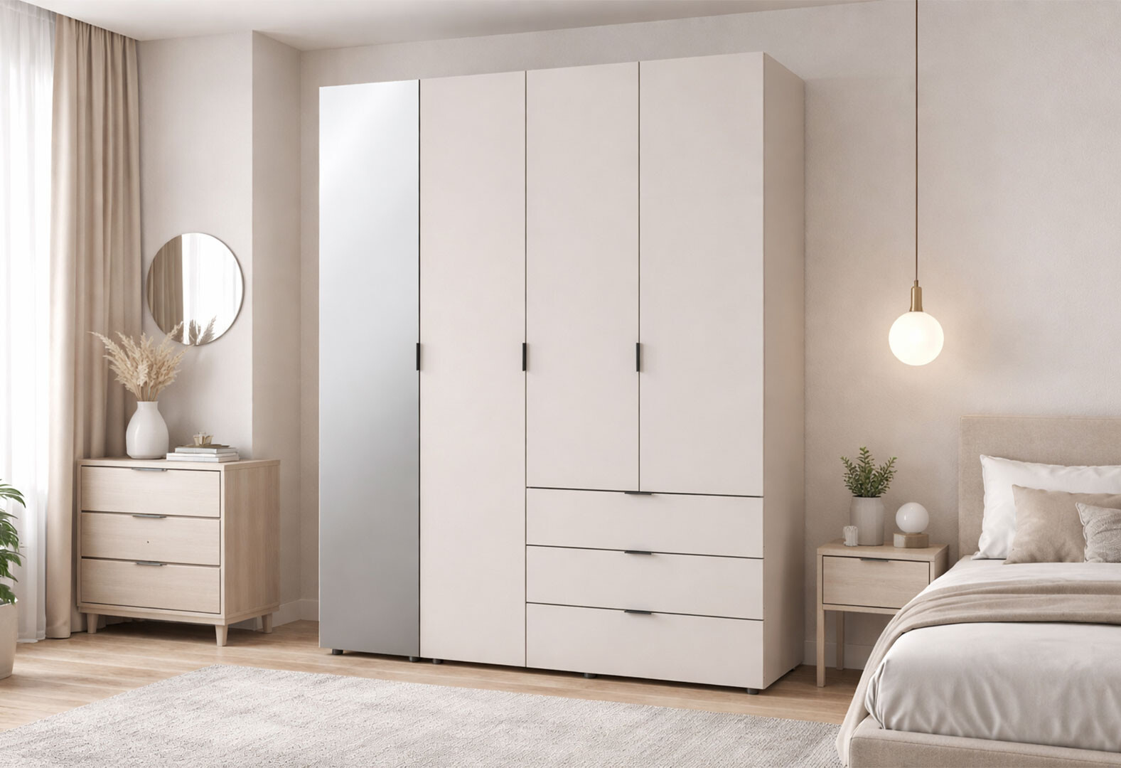 - Шафа Doros Гелар 4-дверна з дзеркалом і 3 шухлядами 155 см Кашемір