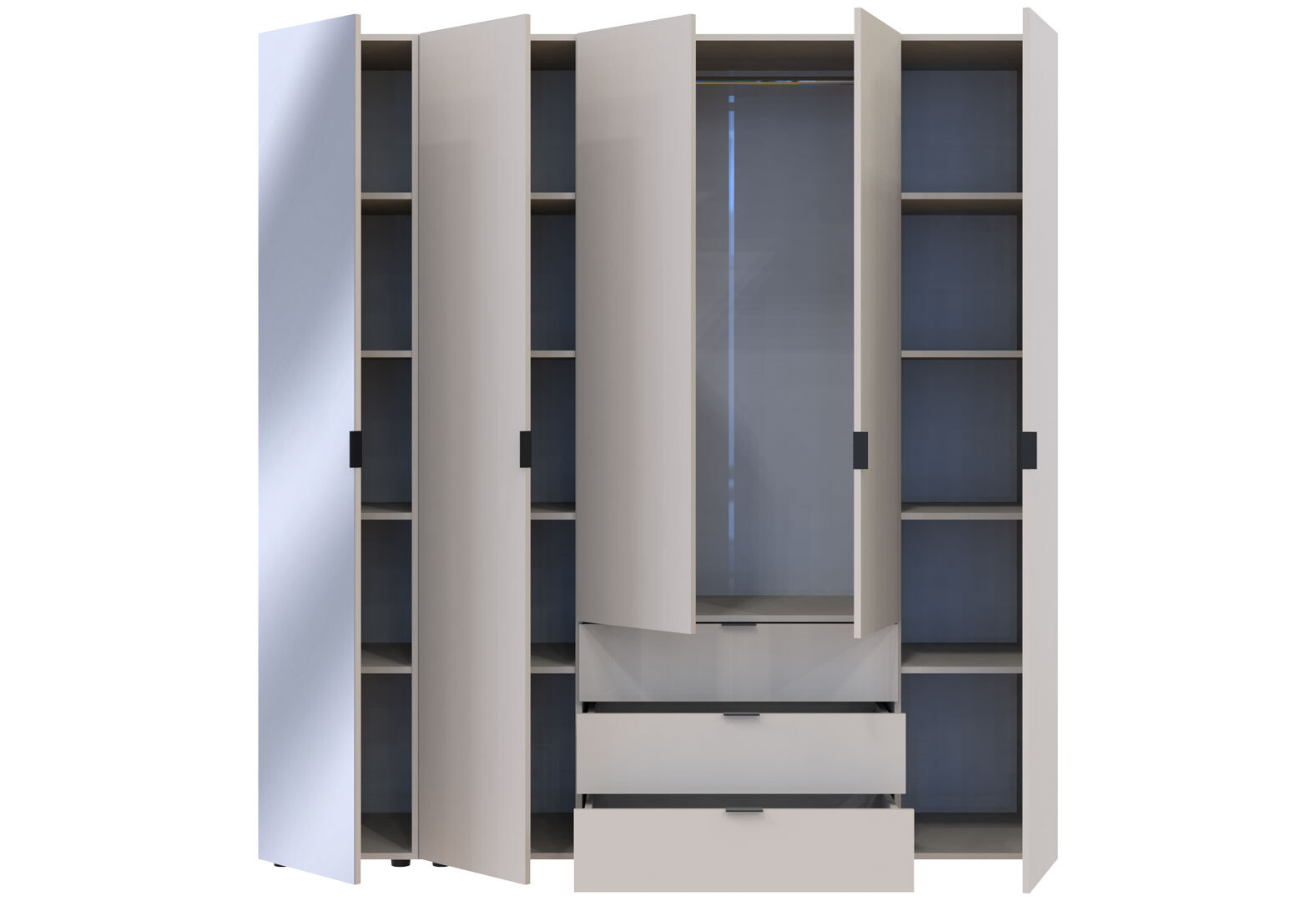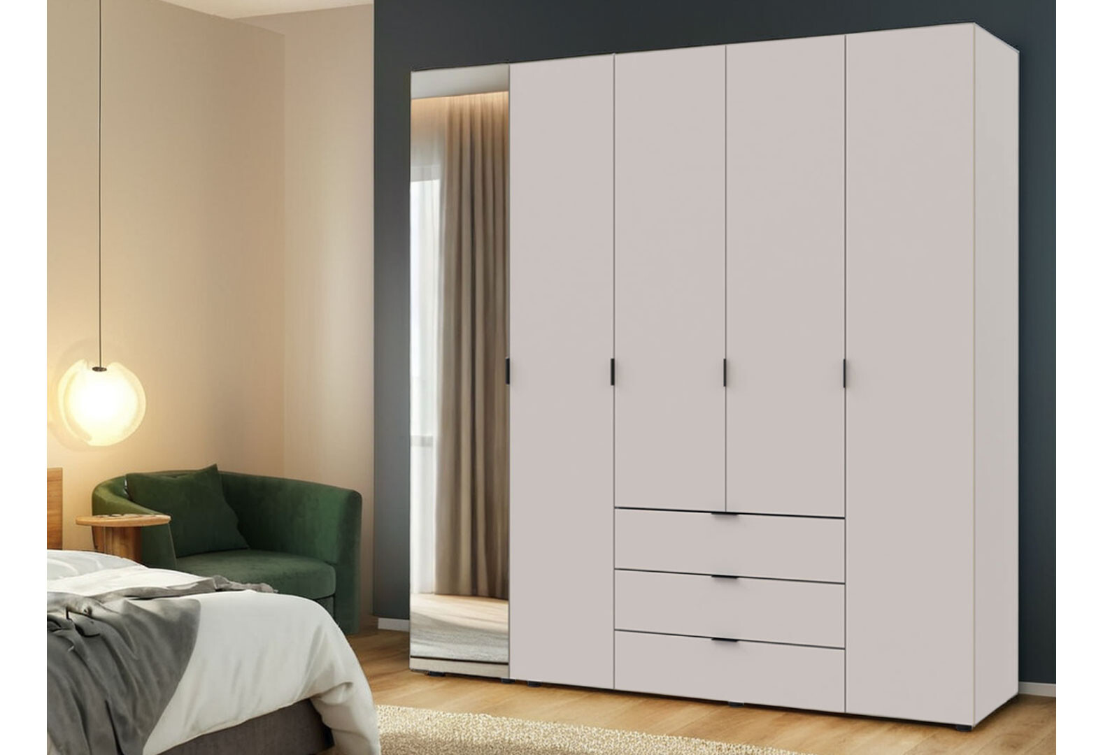 - Шафа Doros Гелар 5-дверна з дзеркалом і 3 шухлядами 194 см Кашемір