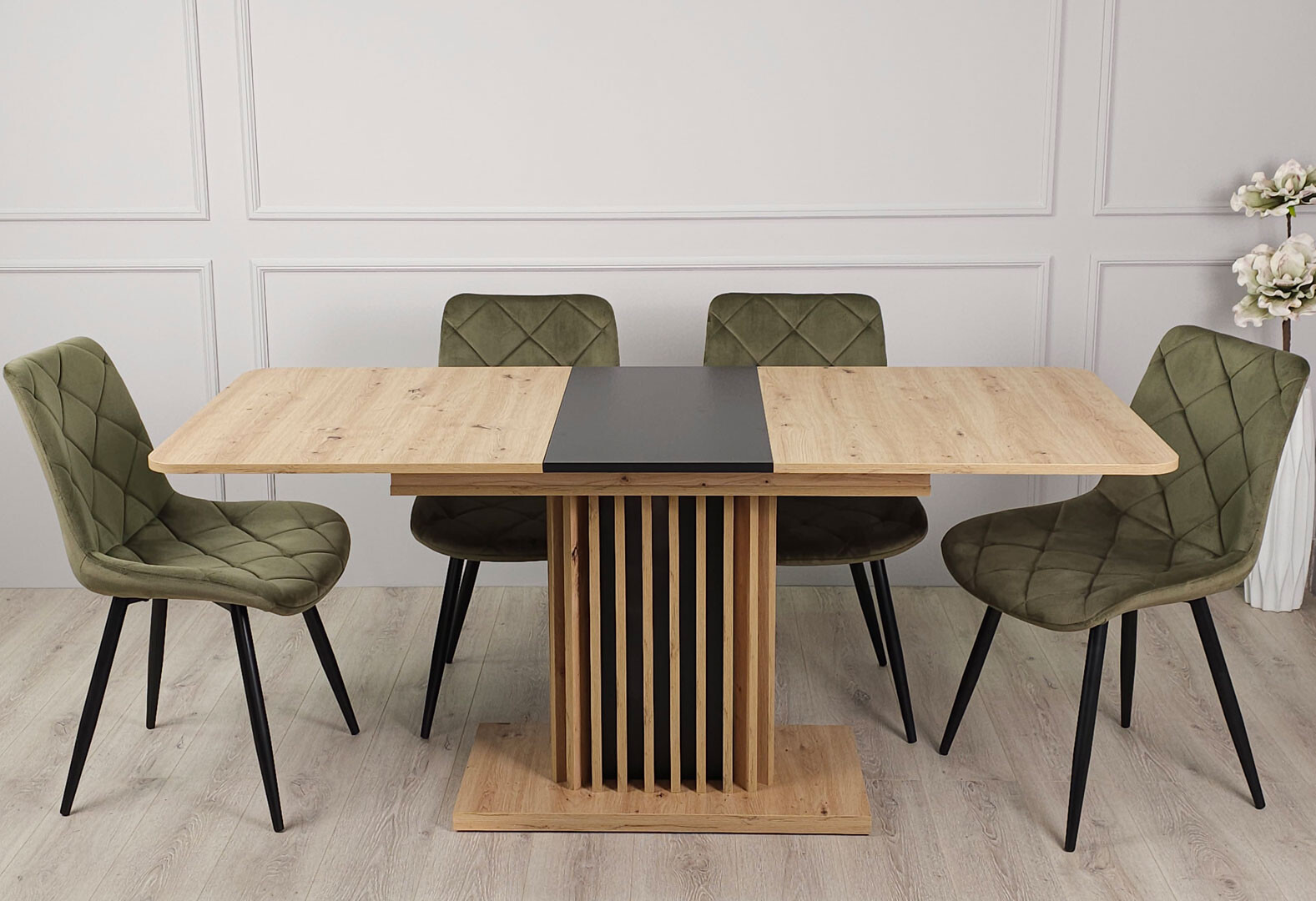 Стіл обідній Intarsio Касандра / Casandra 140x80 см розкладний, дуб артизан / чорний