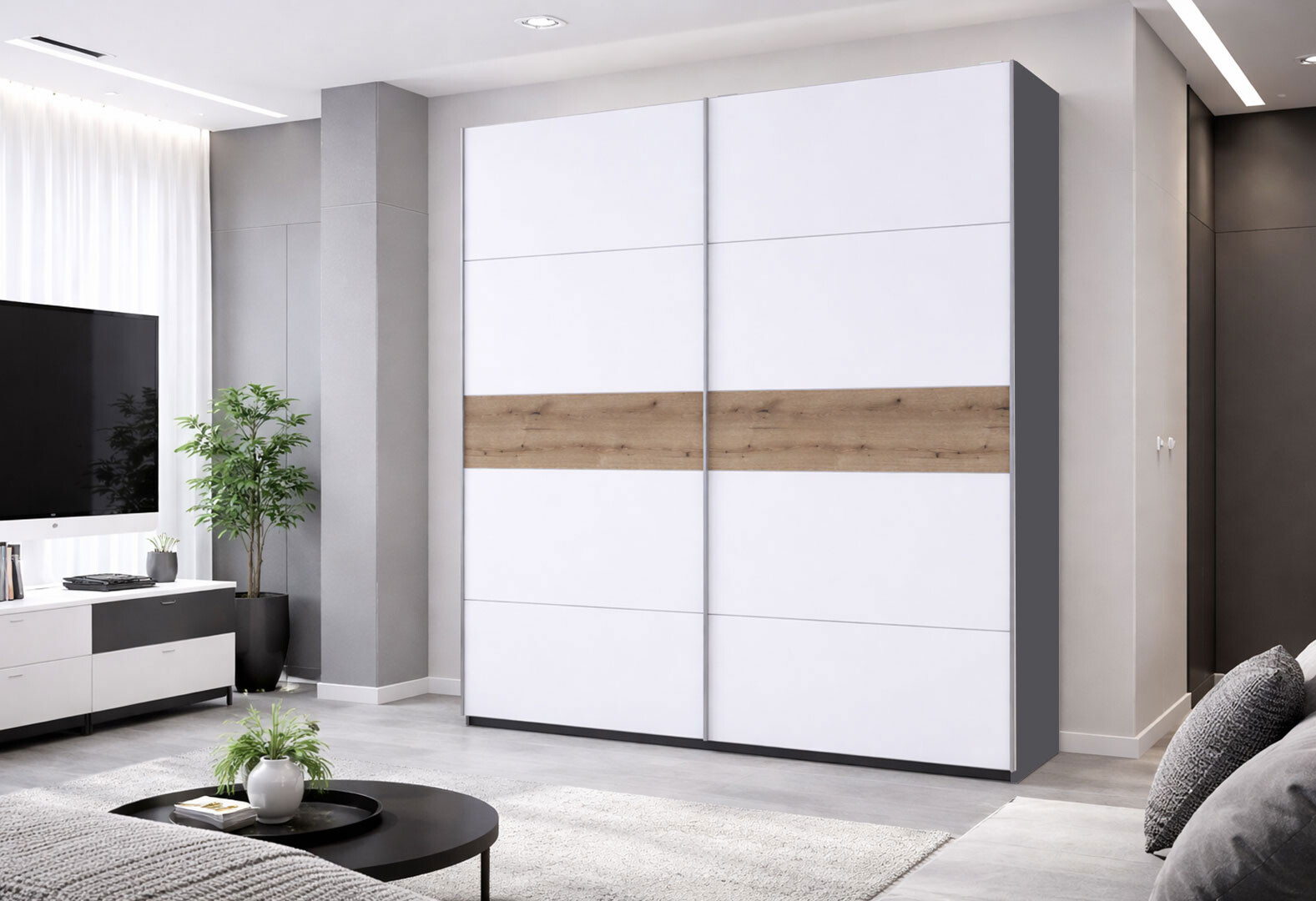 Зображення 6 - Шафа-купе Doros G-Caiser / Джі-Кейзер 2-дверна 220 см, графіт / білий вставка дуб евок