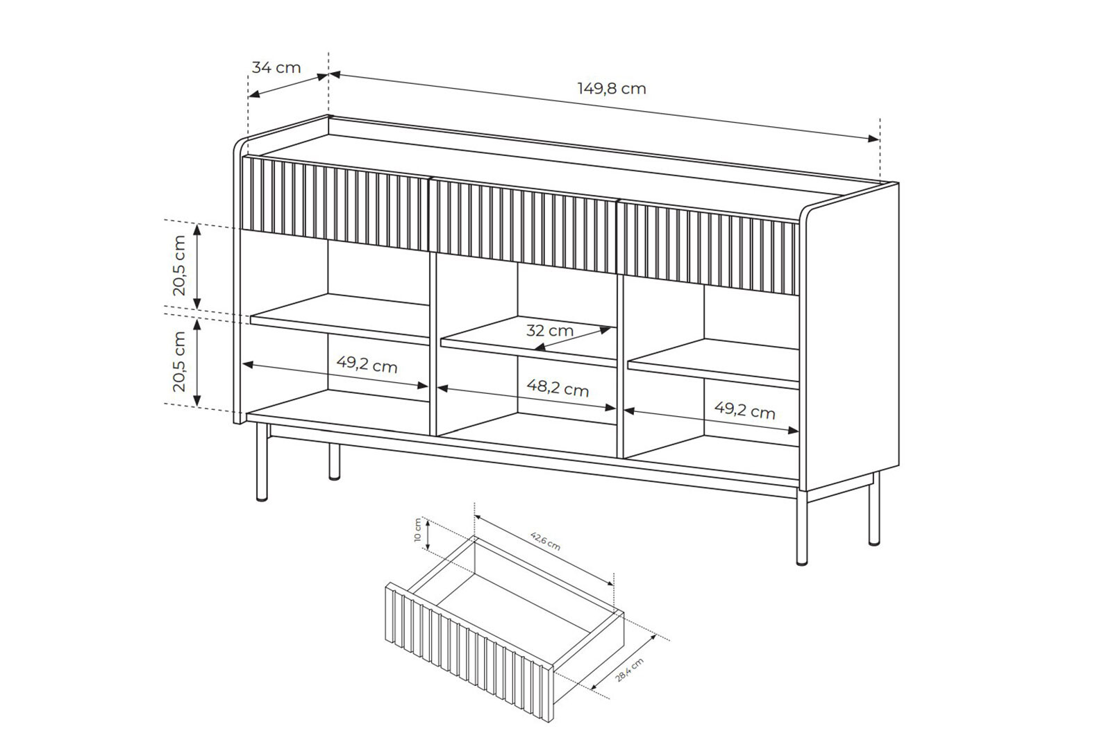 Комод Perfect Home Левел / Level 3-дверний з 3 шухлядами 153 см, бежевий / дуб сканді