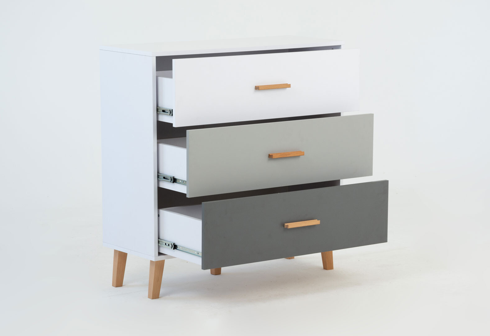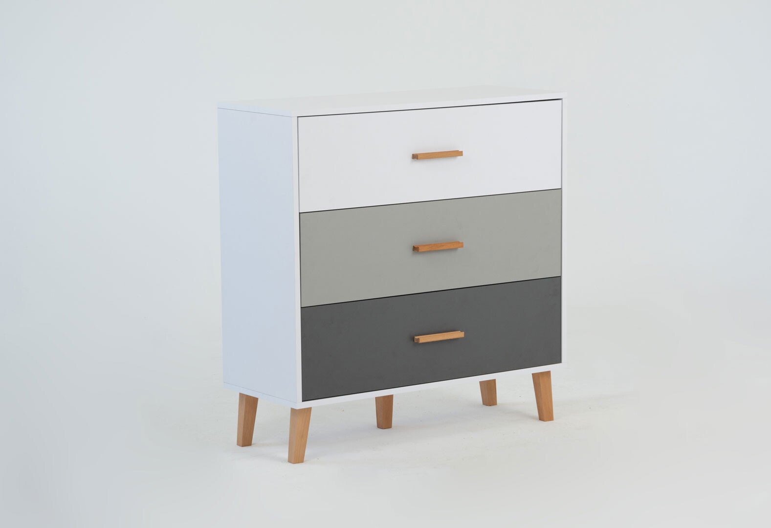 - Комод VMV holding Тіммі / Timmy з 3 шухлядами 90 см, білий / графіт / шиншила