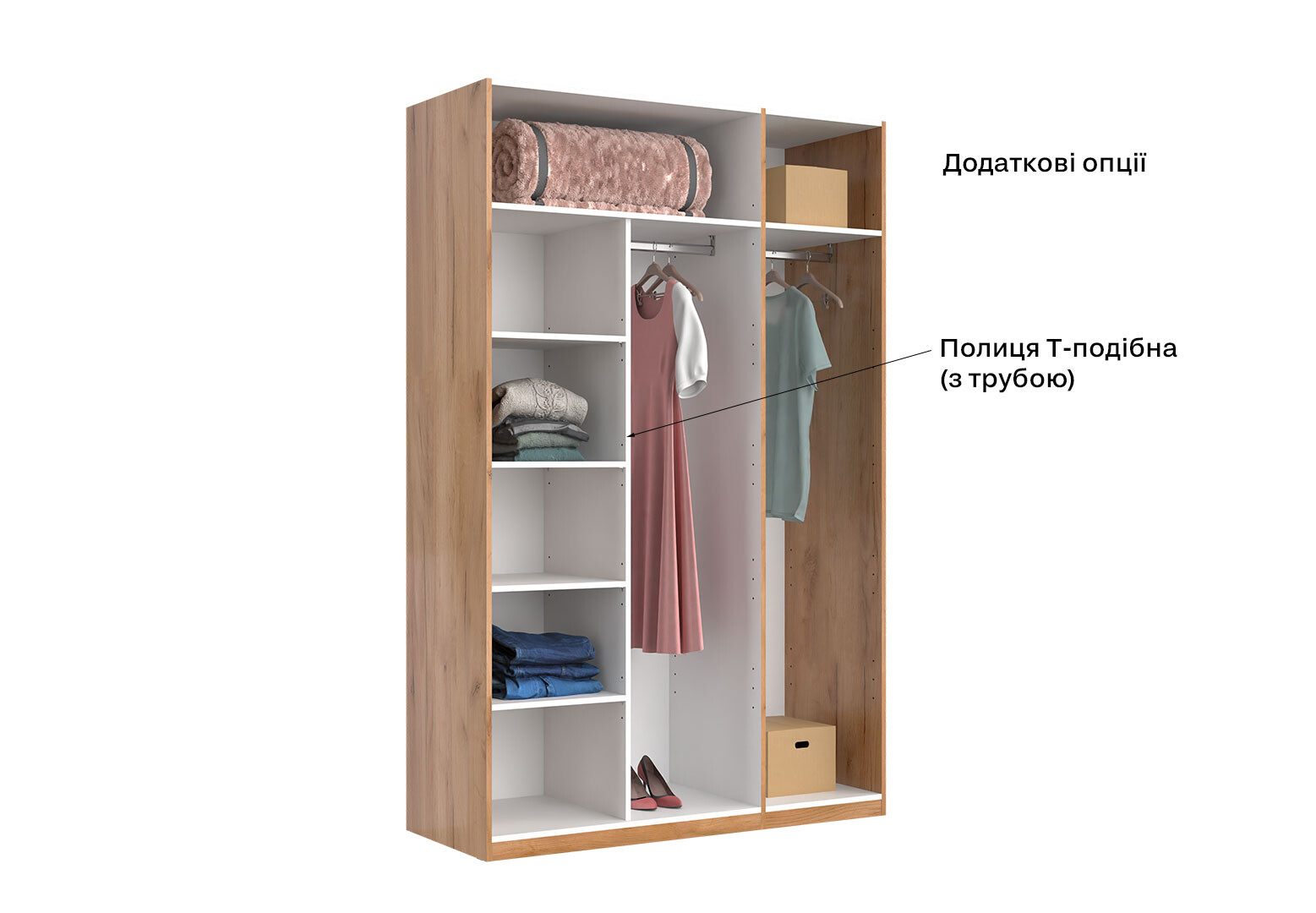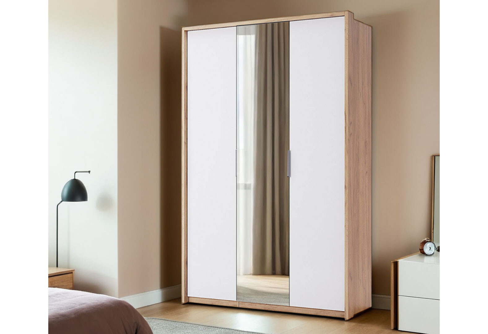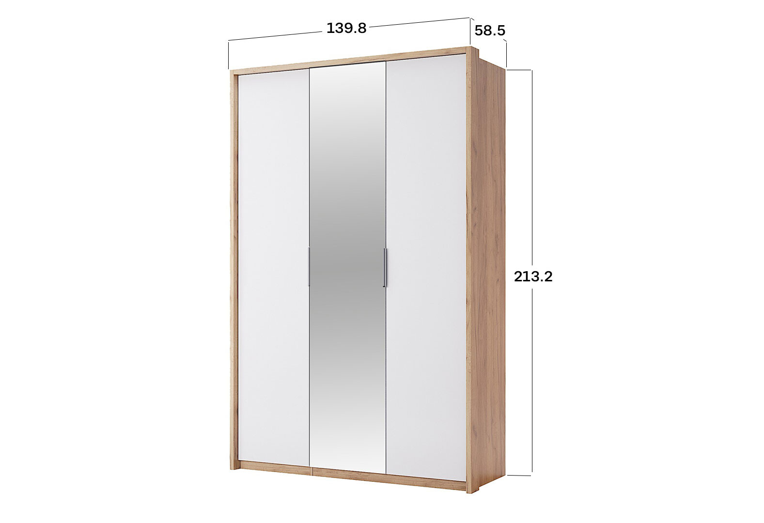 - Шафа MiroMark Асті 3-дверна з дзеркалом 140 см Дуб крафт/Білий серія Н