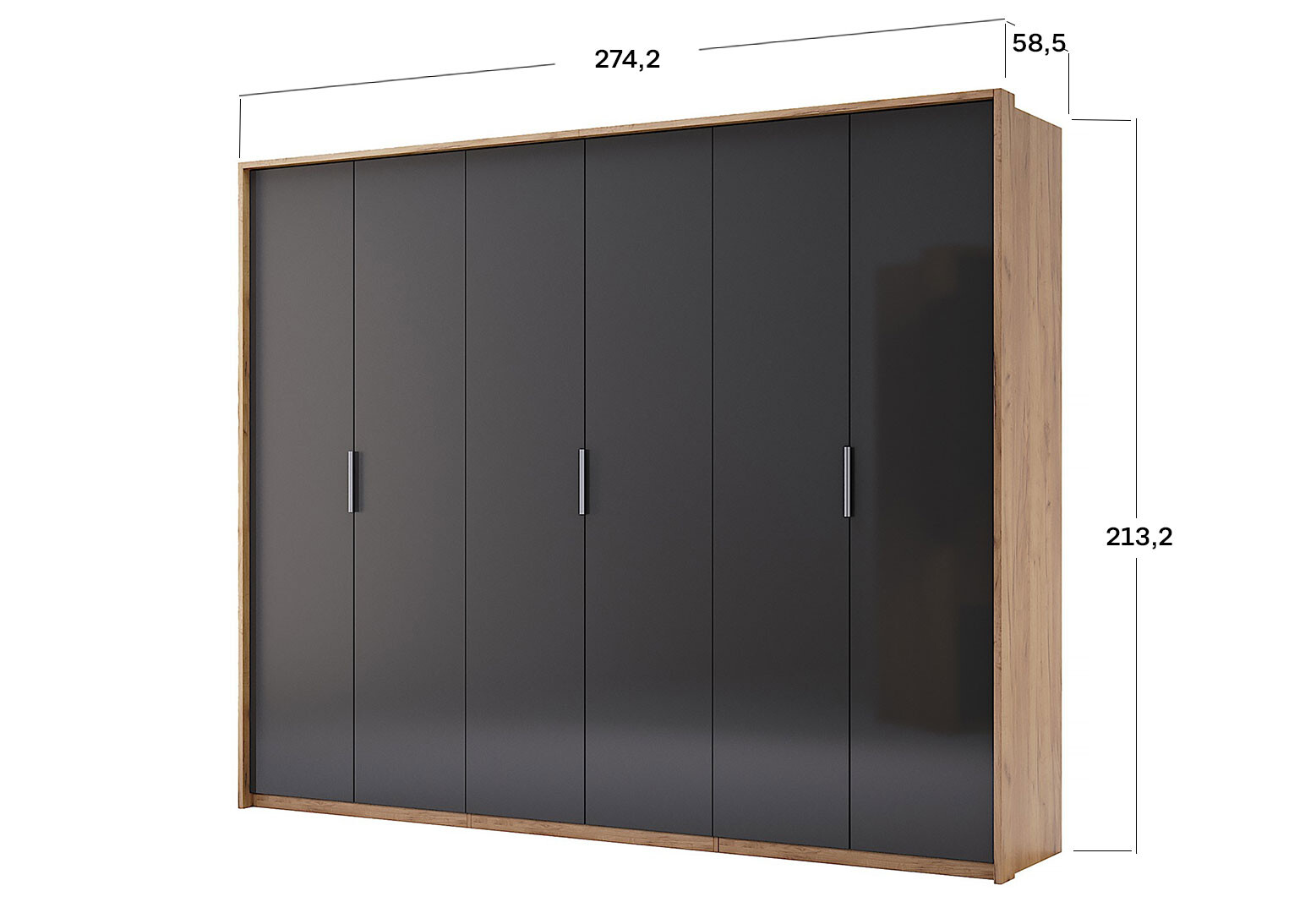 Шафа MiroMark Луна 6-дверна 274 см Лава/Дуб Крафт, серія Н