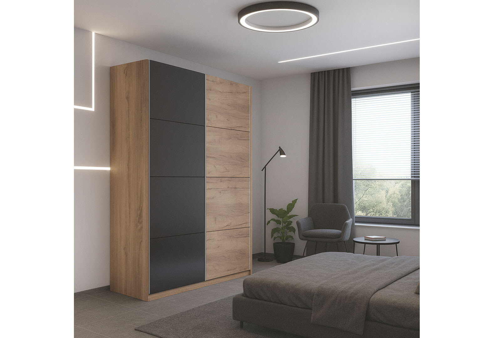 - Шафа-купе MiroMark Луна 2-дверна 150х210 см фасади Лава/Дуб Крафт, серія Н
