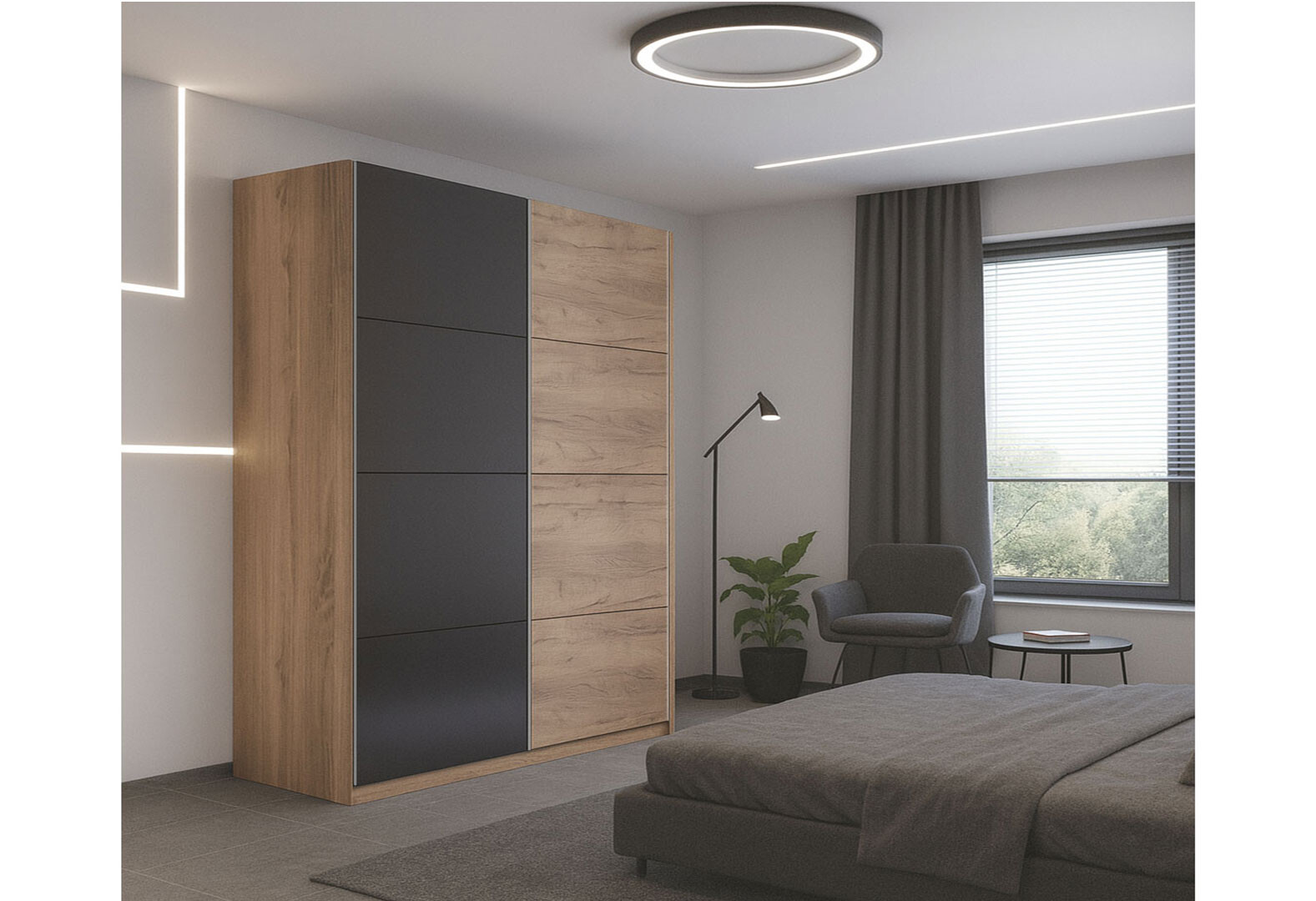 - Шафа-купе MiroMark Луна 2-дверна 200х210 см фасади Лава/Дуб Крафт, серія Н