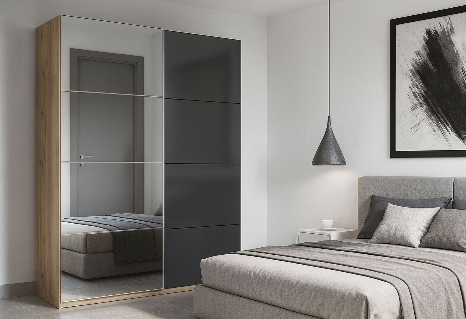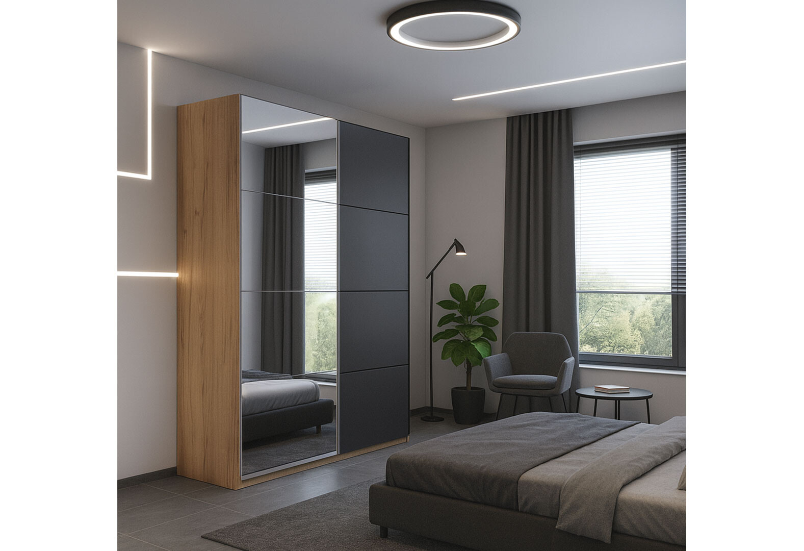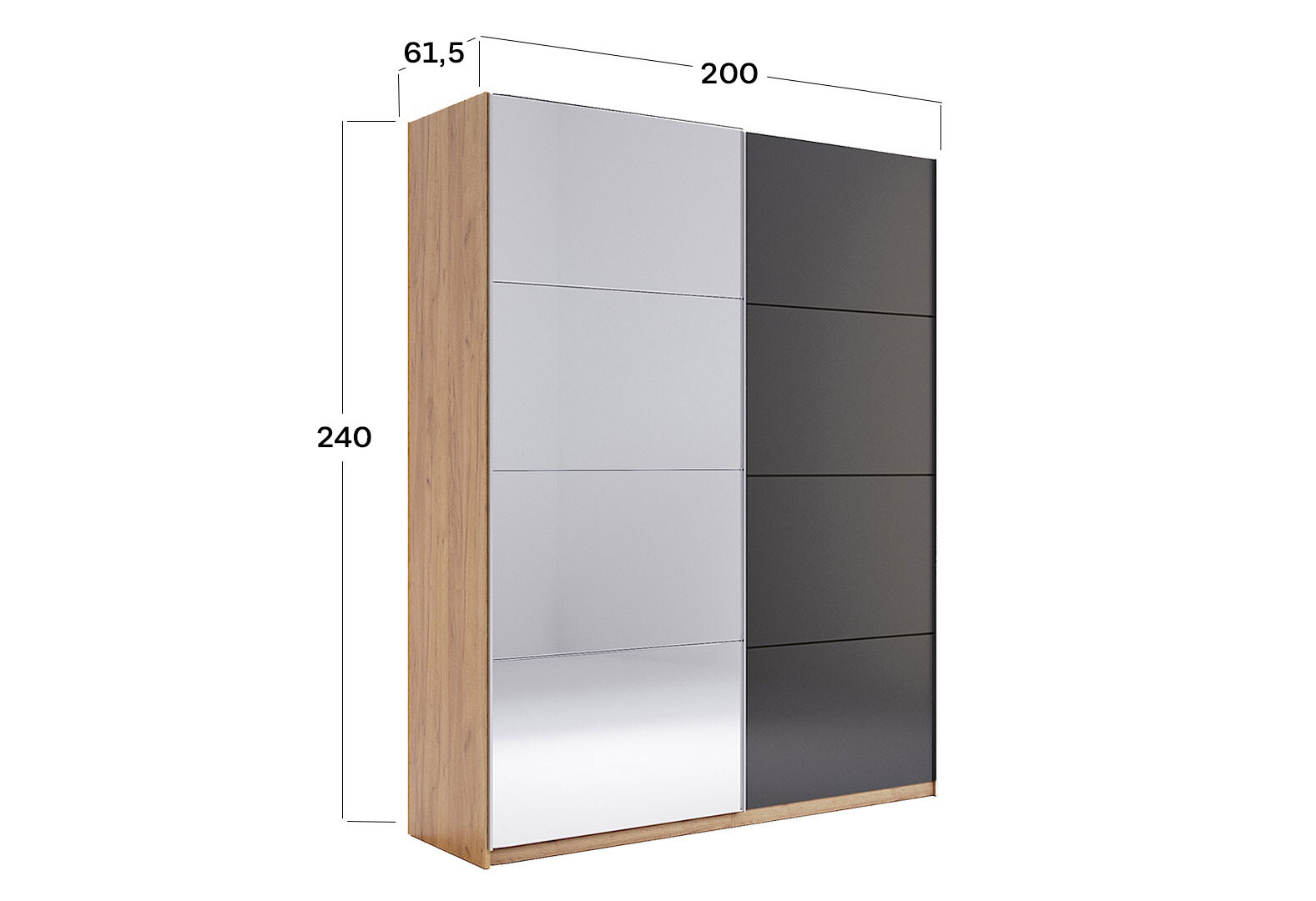 - Шафа-купе MiroMark Луна 2-дверна із дзеркалом 200х240 см фасад Лава, серія Н