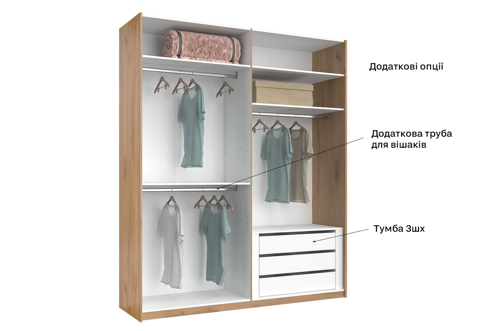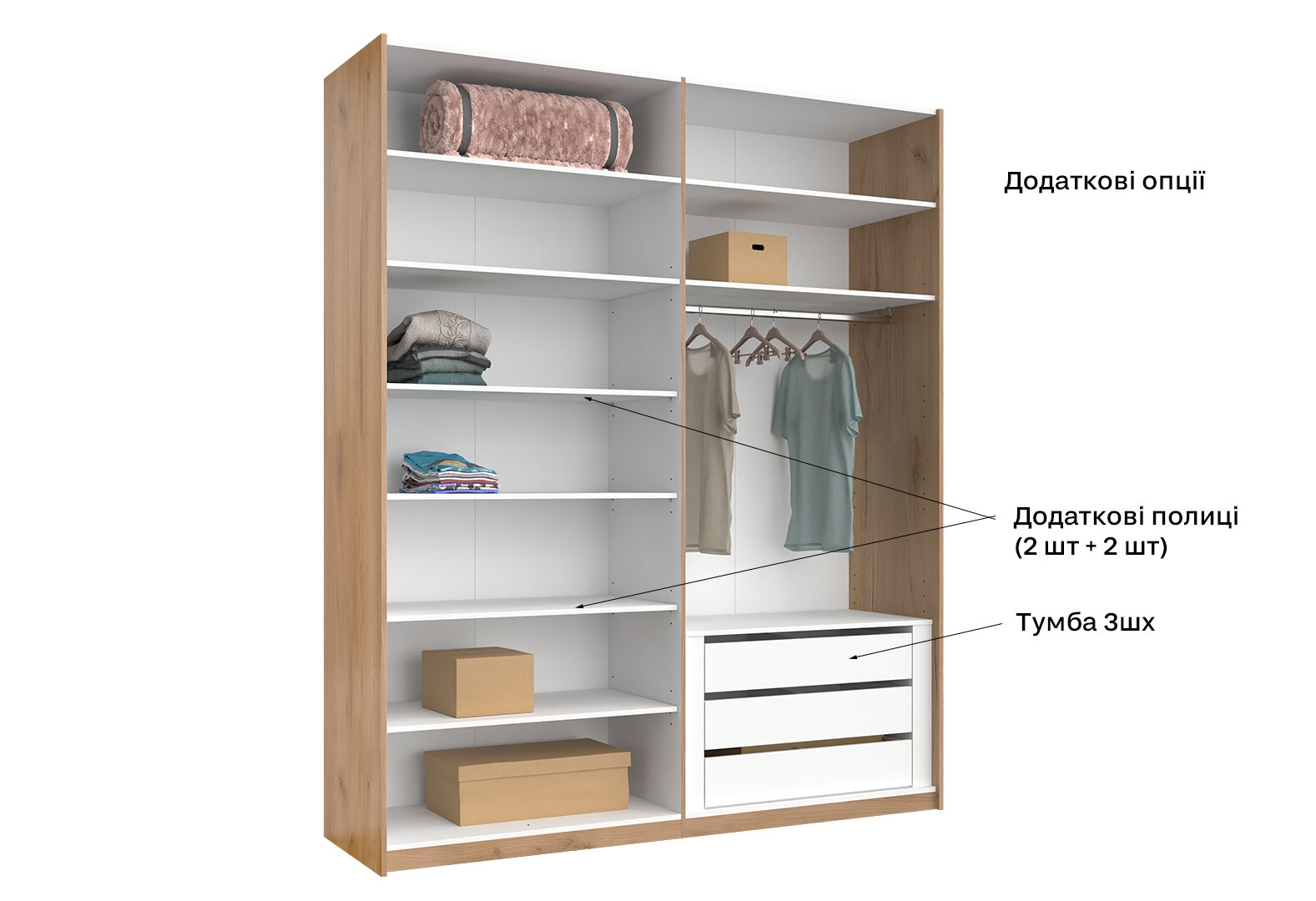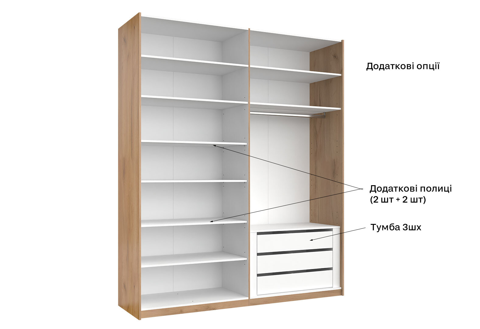 - Шафа-купе MiroMark Луна 2-дверна із дзеркалом 200х240 см фасад Лава, серія Н