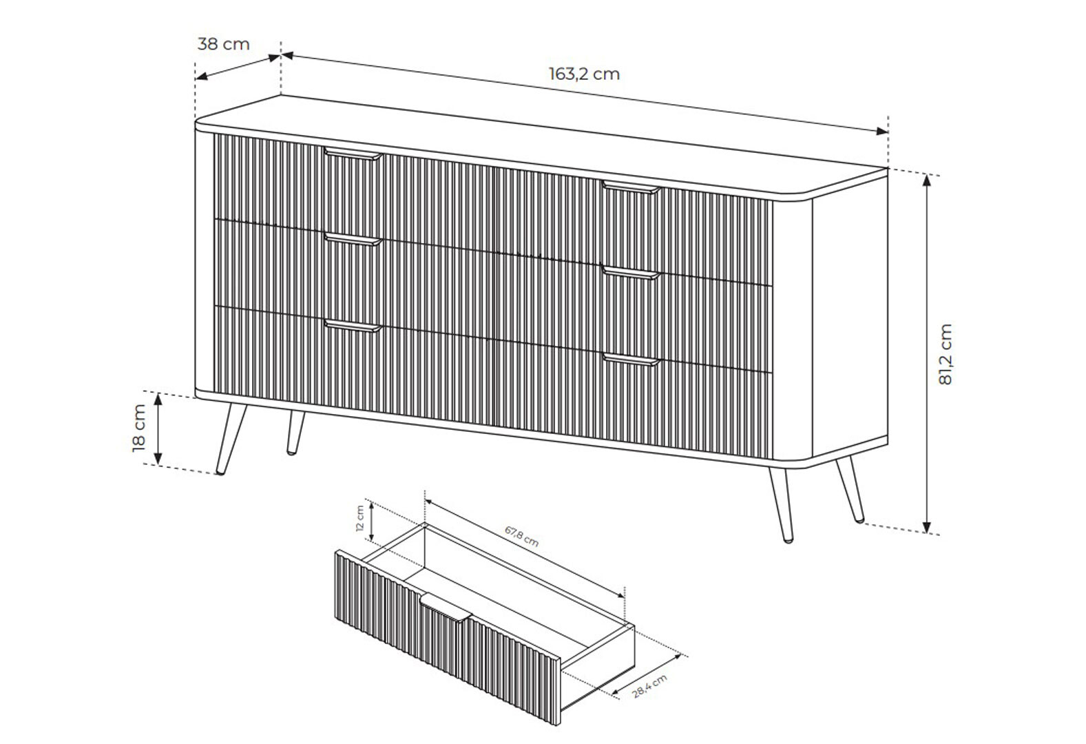 Комод Perfect Home Ланте / Lante з 6 шухлядами 163 см, бежевий, чорні ніжки