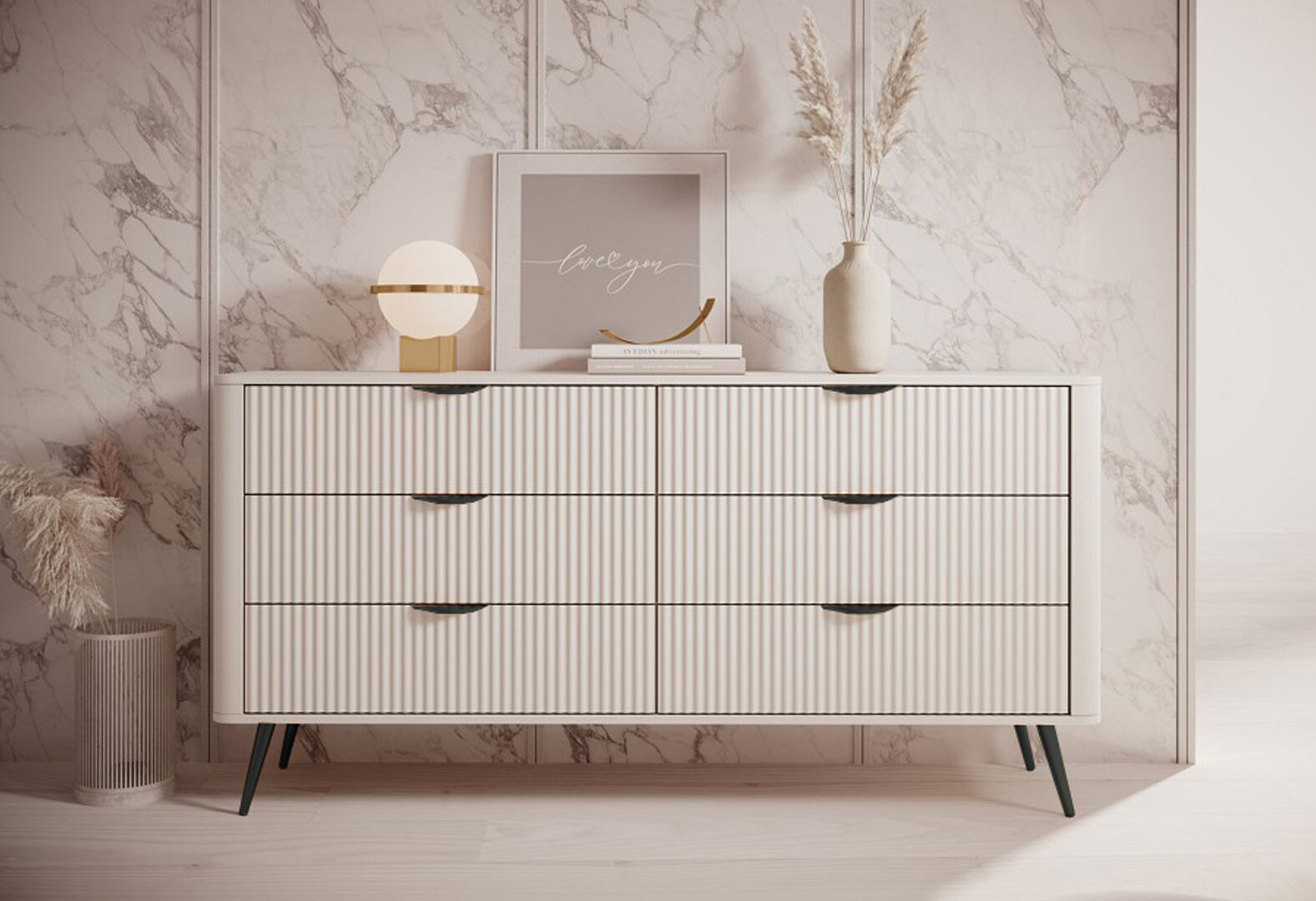 - Комод Perfect Home Ланте / Lante з 6 шухлядами 163 см, бежевий, чорні ніжки