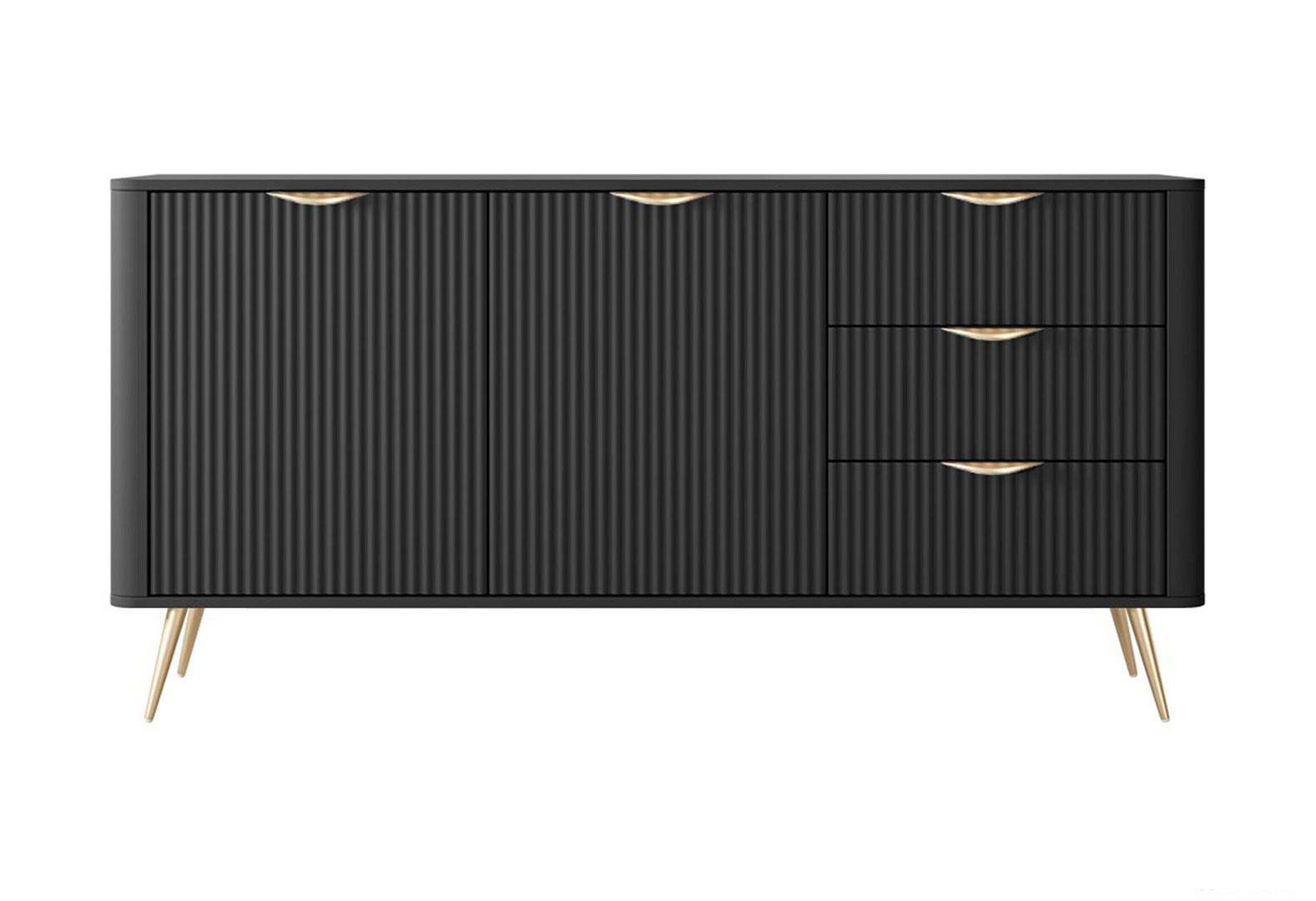 Комод Perfect Home Ланте / Lante 2-дверний з 3 шухлядами 163 см, чорний, золоті ніжки