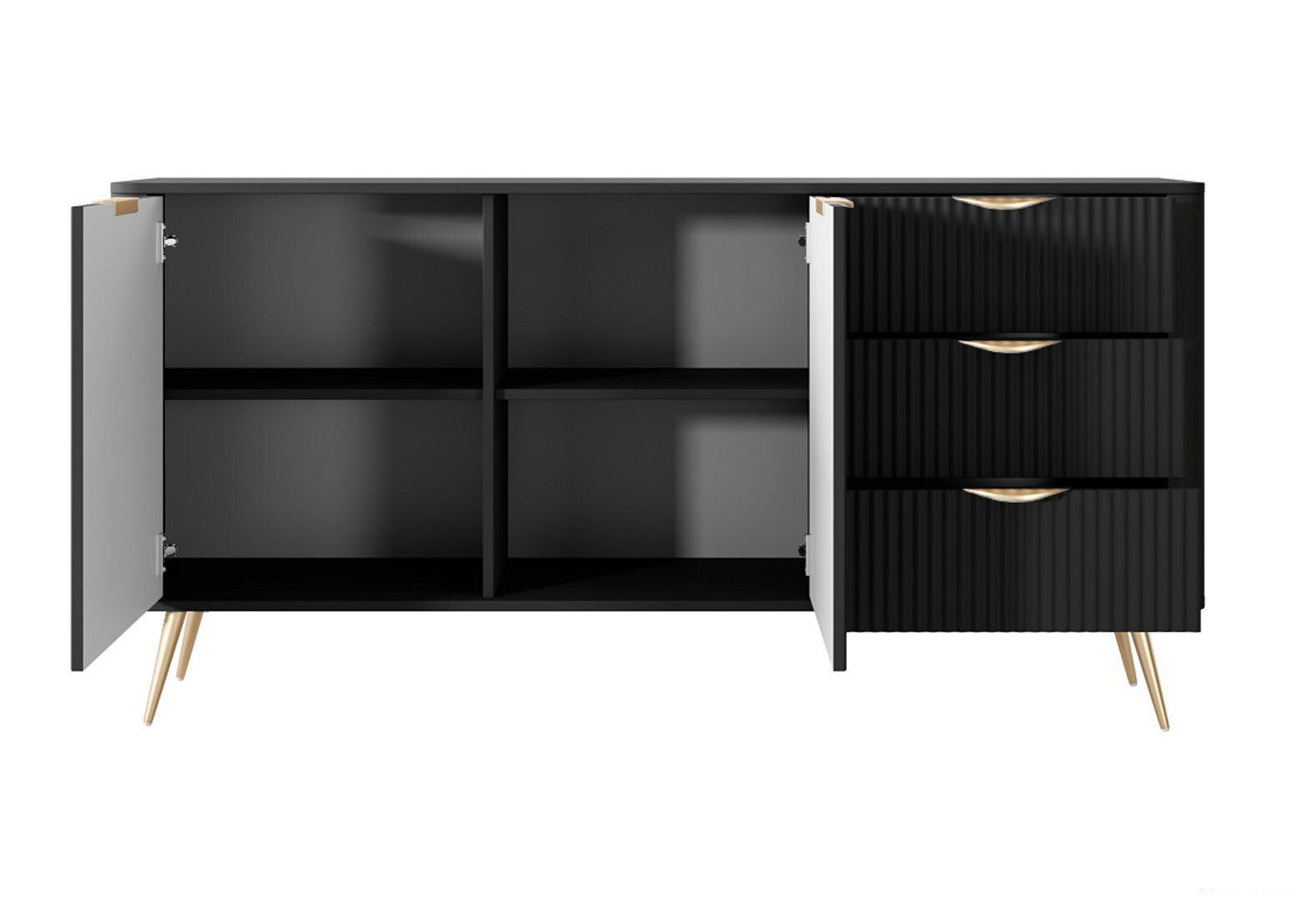 - Комод Perfect Home Ланте / Lante 2-дверний з 3 шухлядами 163 см, чорний, золоті ніжки