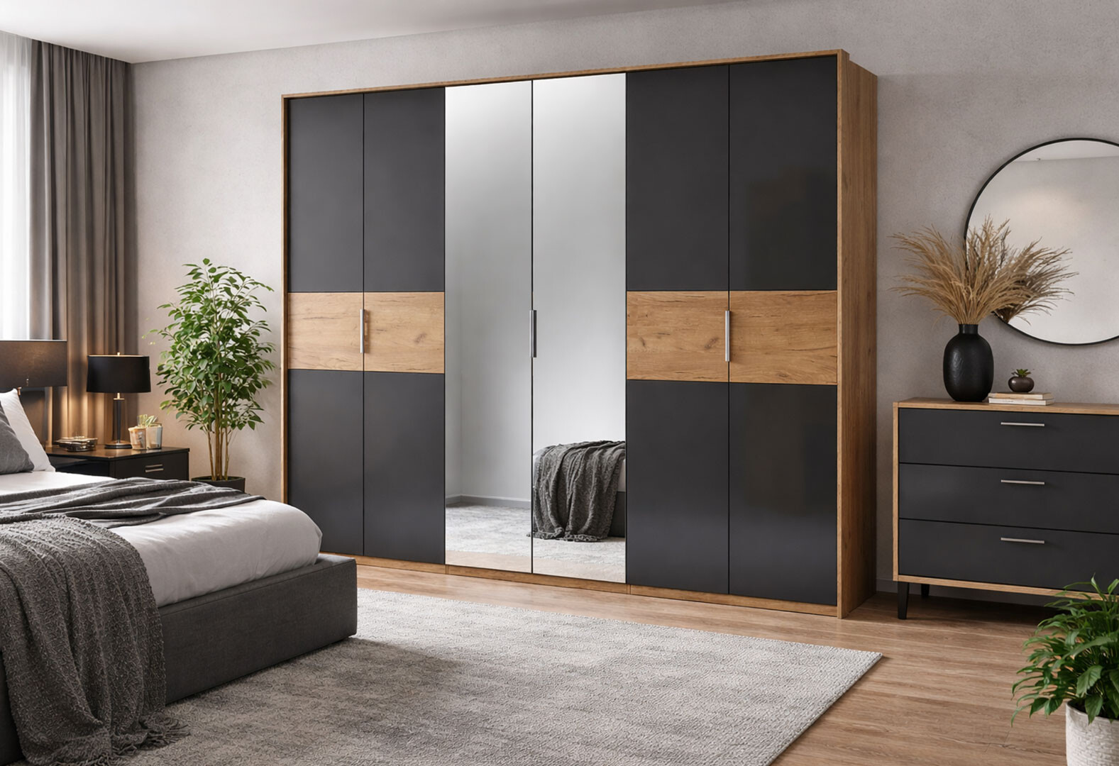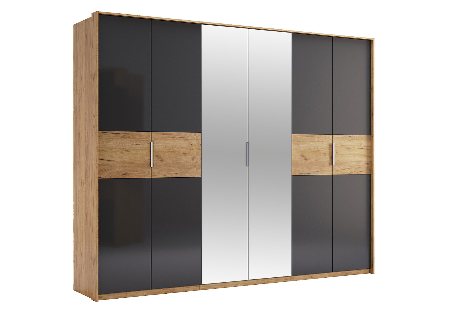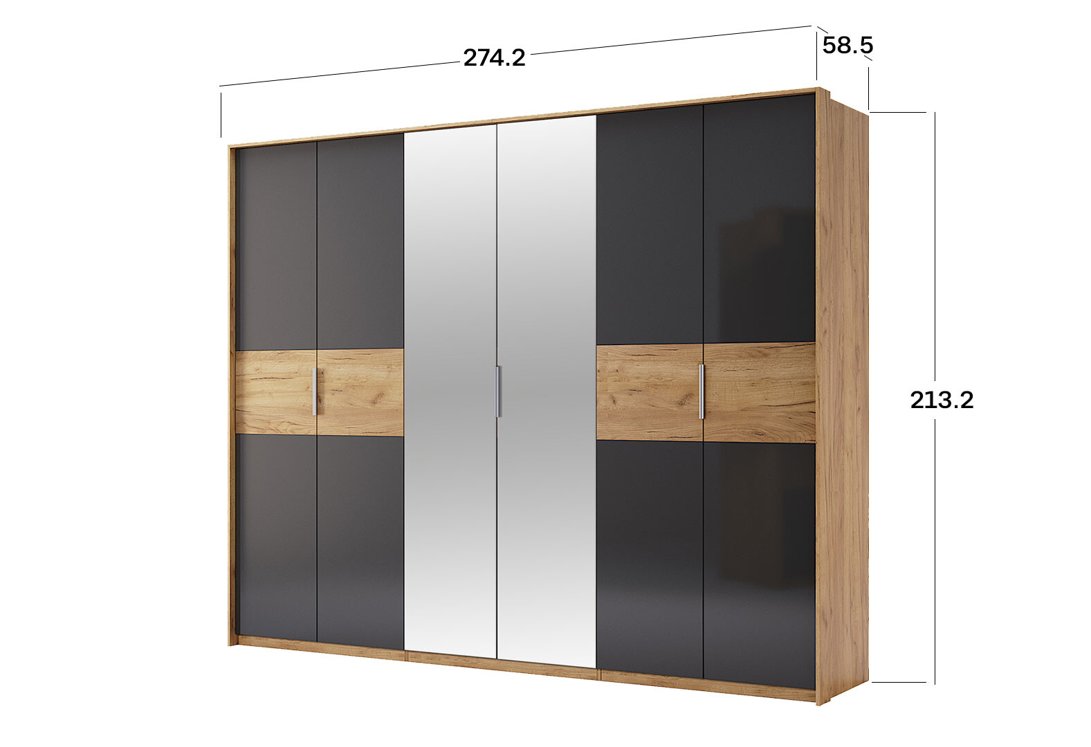 Шафа MiroMark Рамона 6-дверна з дзеркалом 274 см Дуб крафт/Лава, серія Н