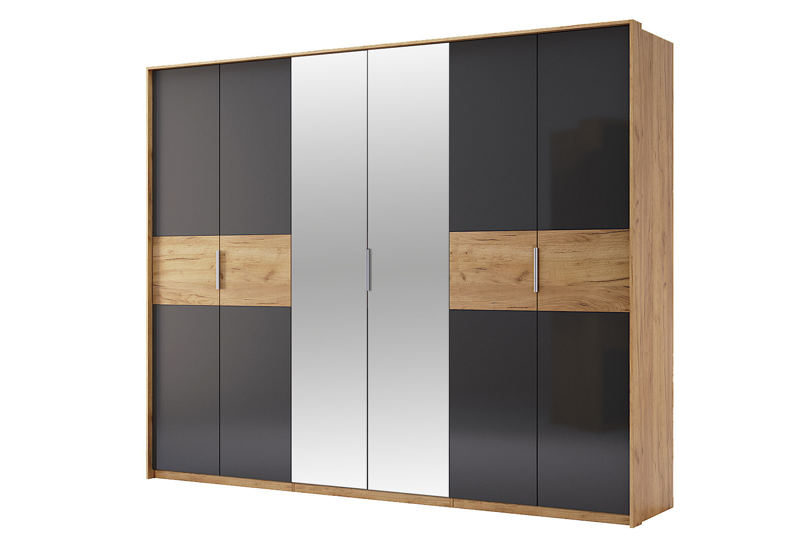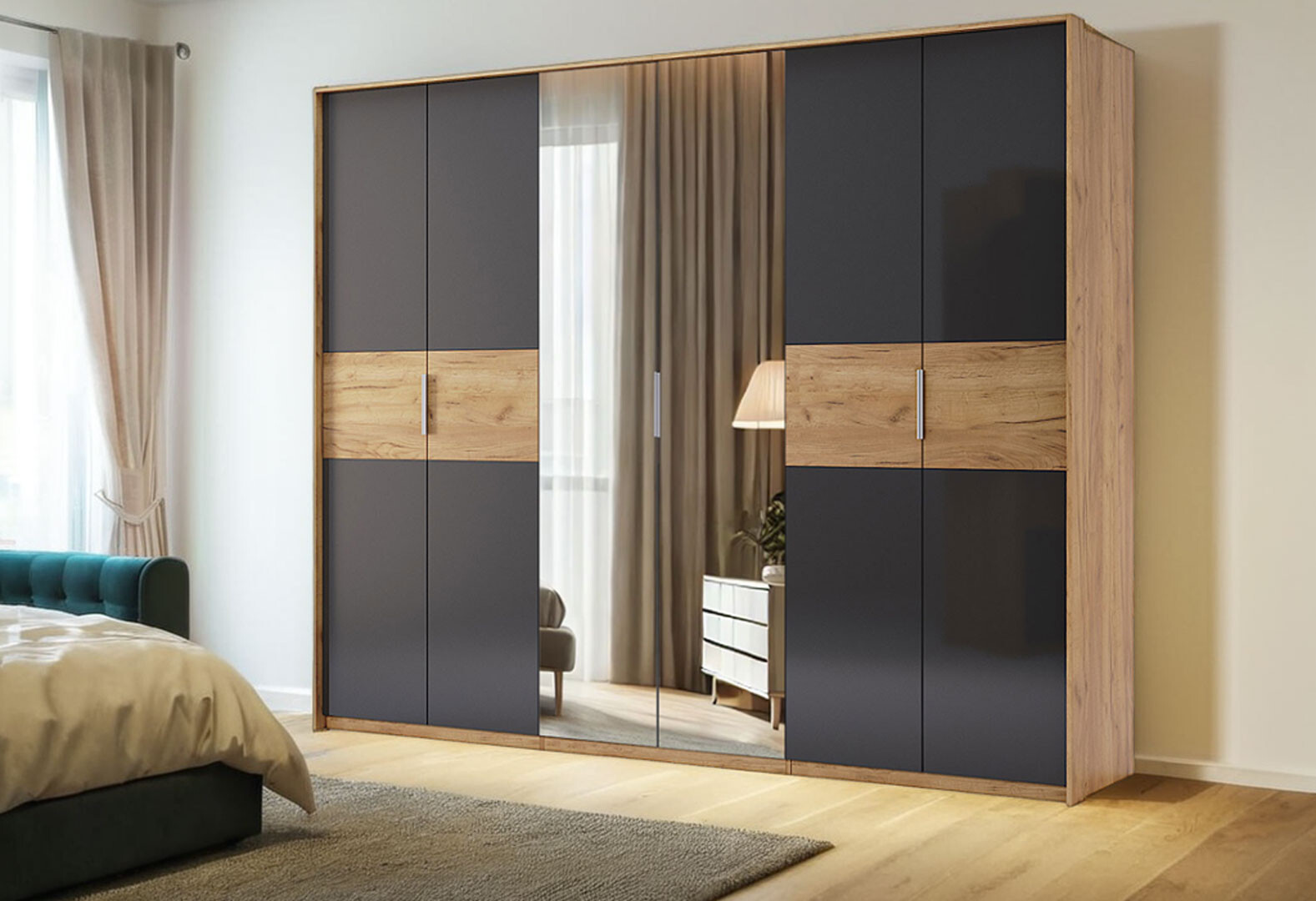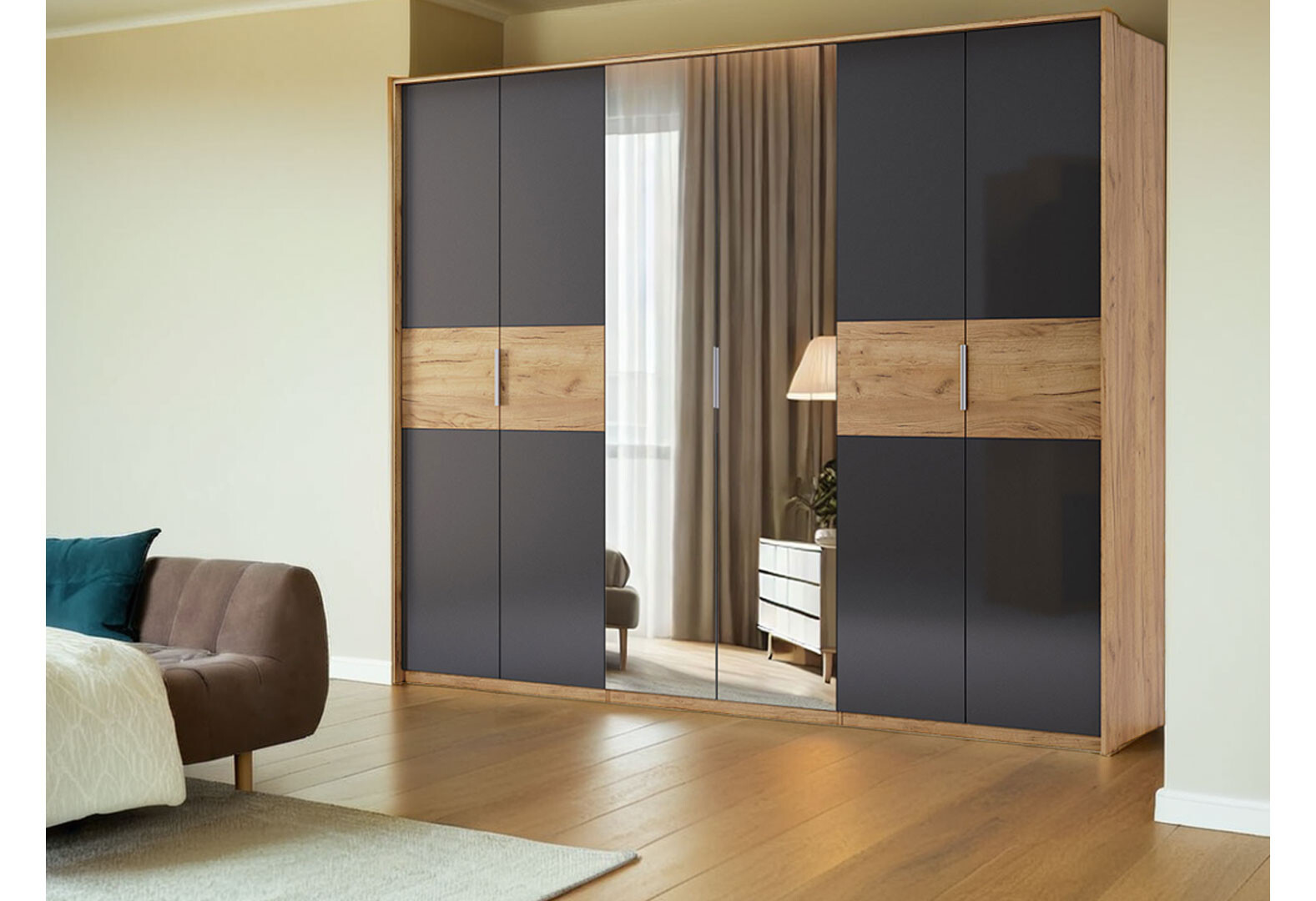 - Шафа MiroMark Рамона 6-дверна з дзеркалом 274 см Дуб крафт/Лава, серія Н