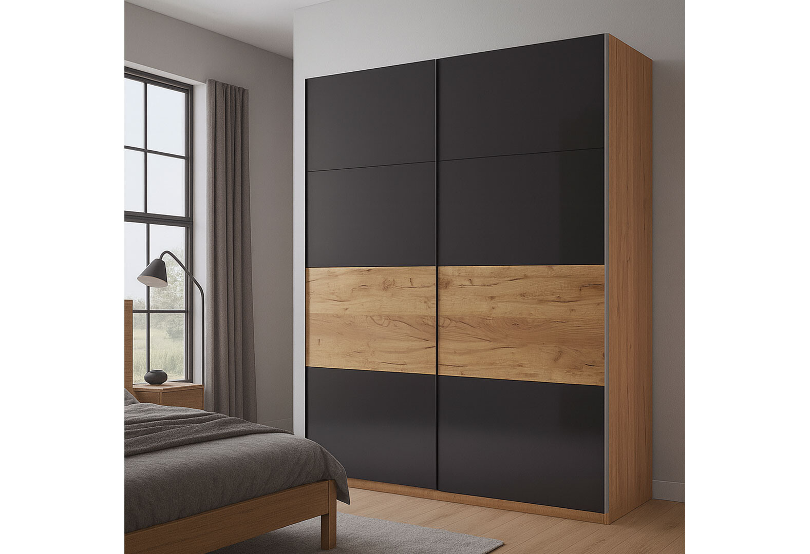 Шафа-купе MiroMark Рамона 2-дверна 150х210 см Дуб Крафт/Лава, серія Н