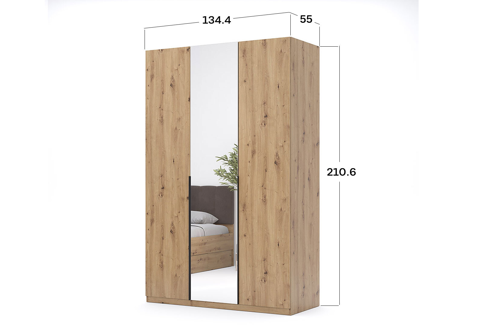 Шафа MiroMark Тедді 3-дверна із дзеркалом 134 см дуб артізан, серія Н