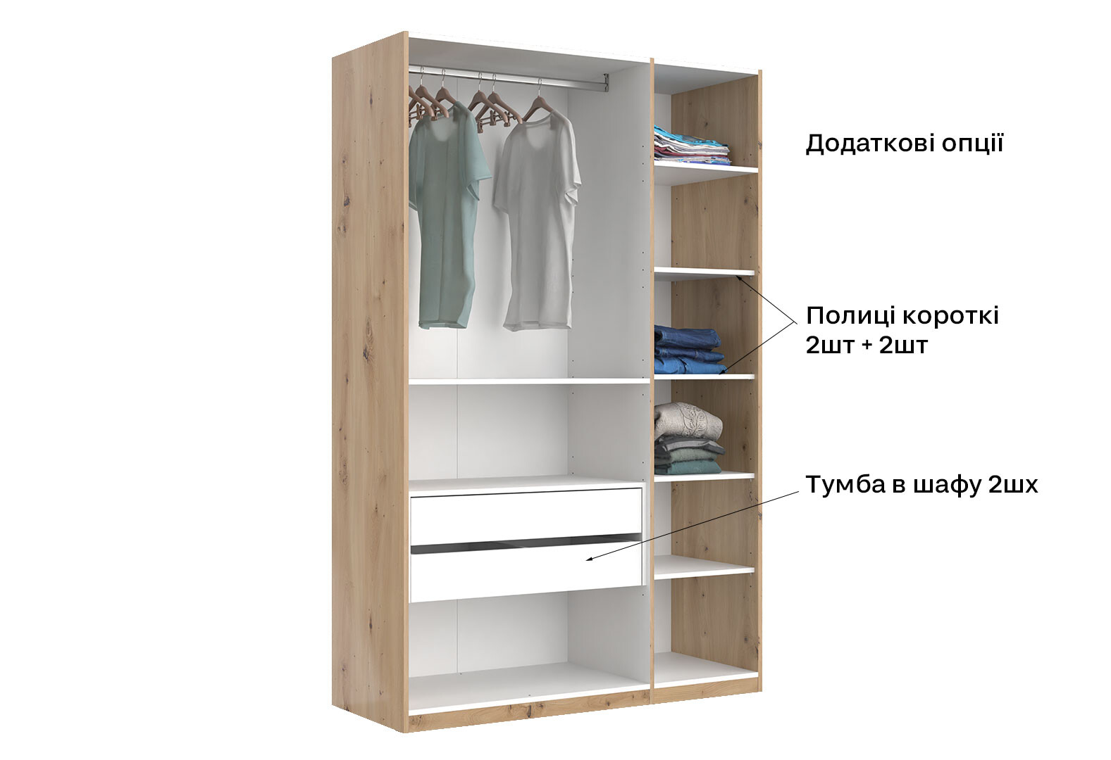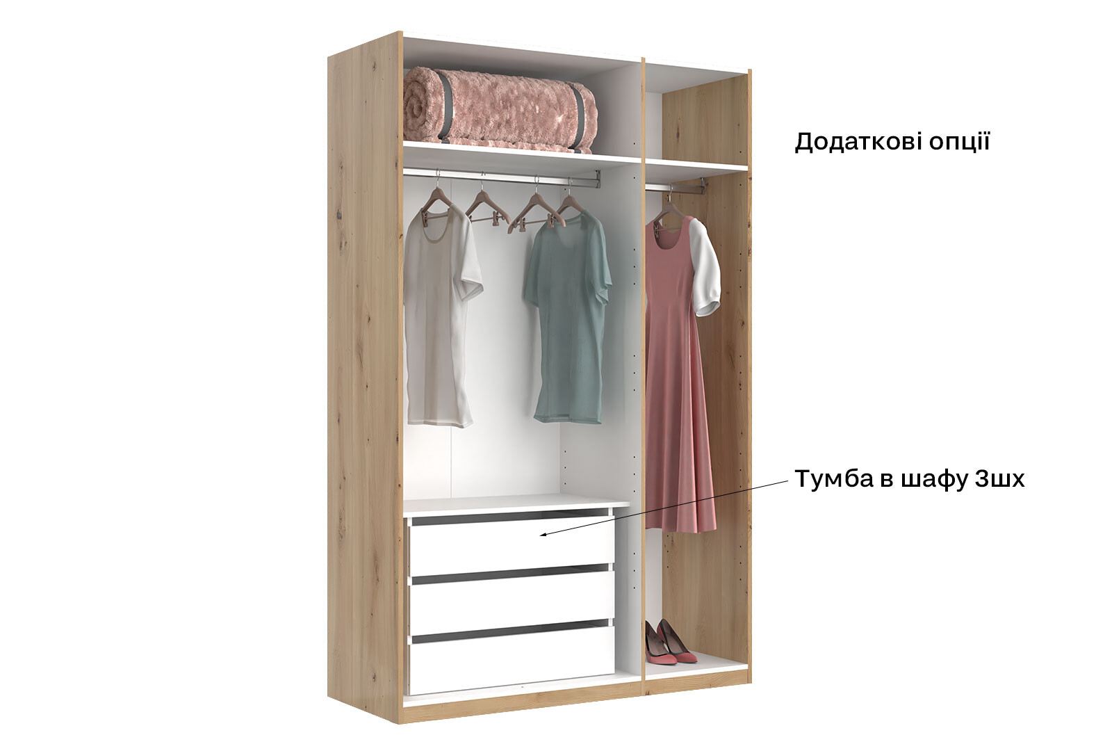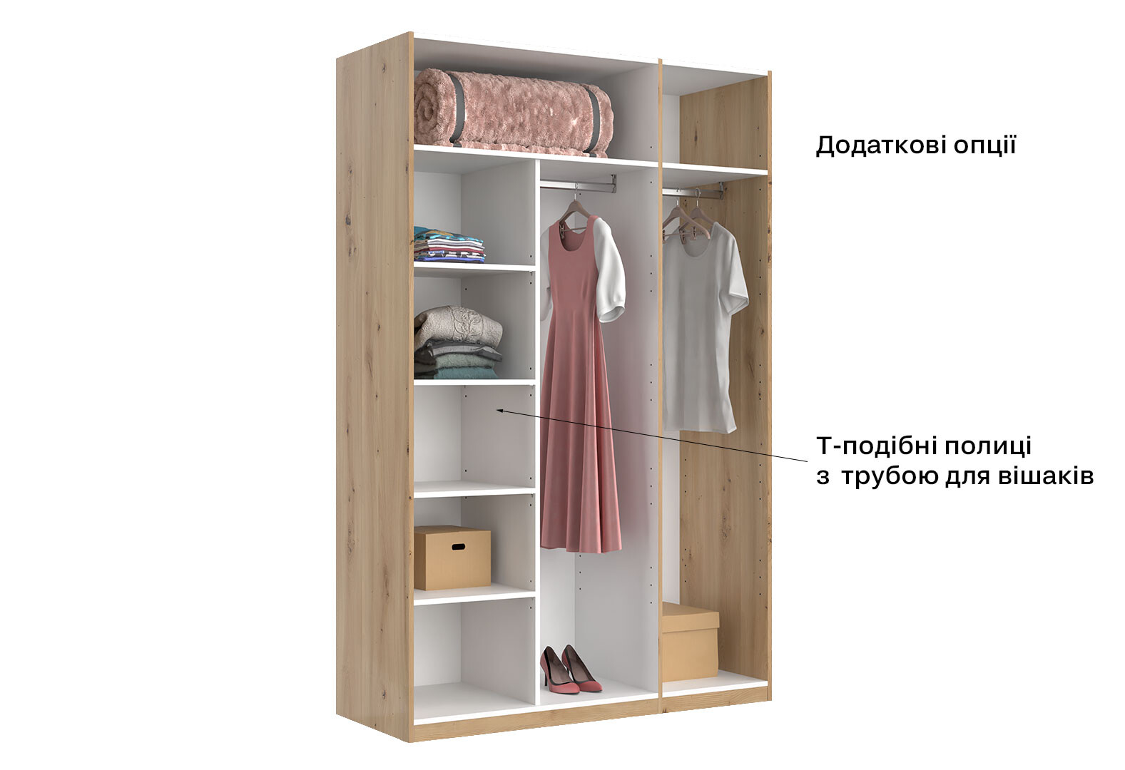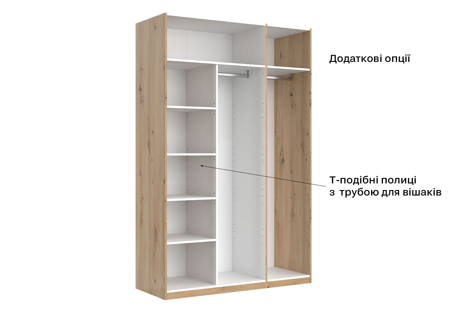 - Шафа MiroMark Тедді 3-дверна із дзеркалом 134 см дуб артізан, серія Н