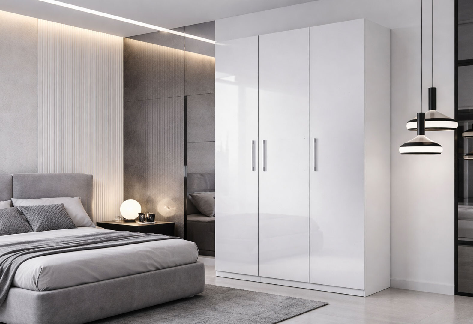 Шафа MiroMark Мегі / Megy 3-дверна 134 см глянець сірий шиншила, серія Н