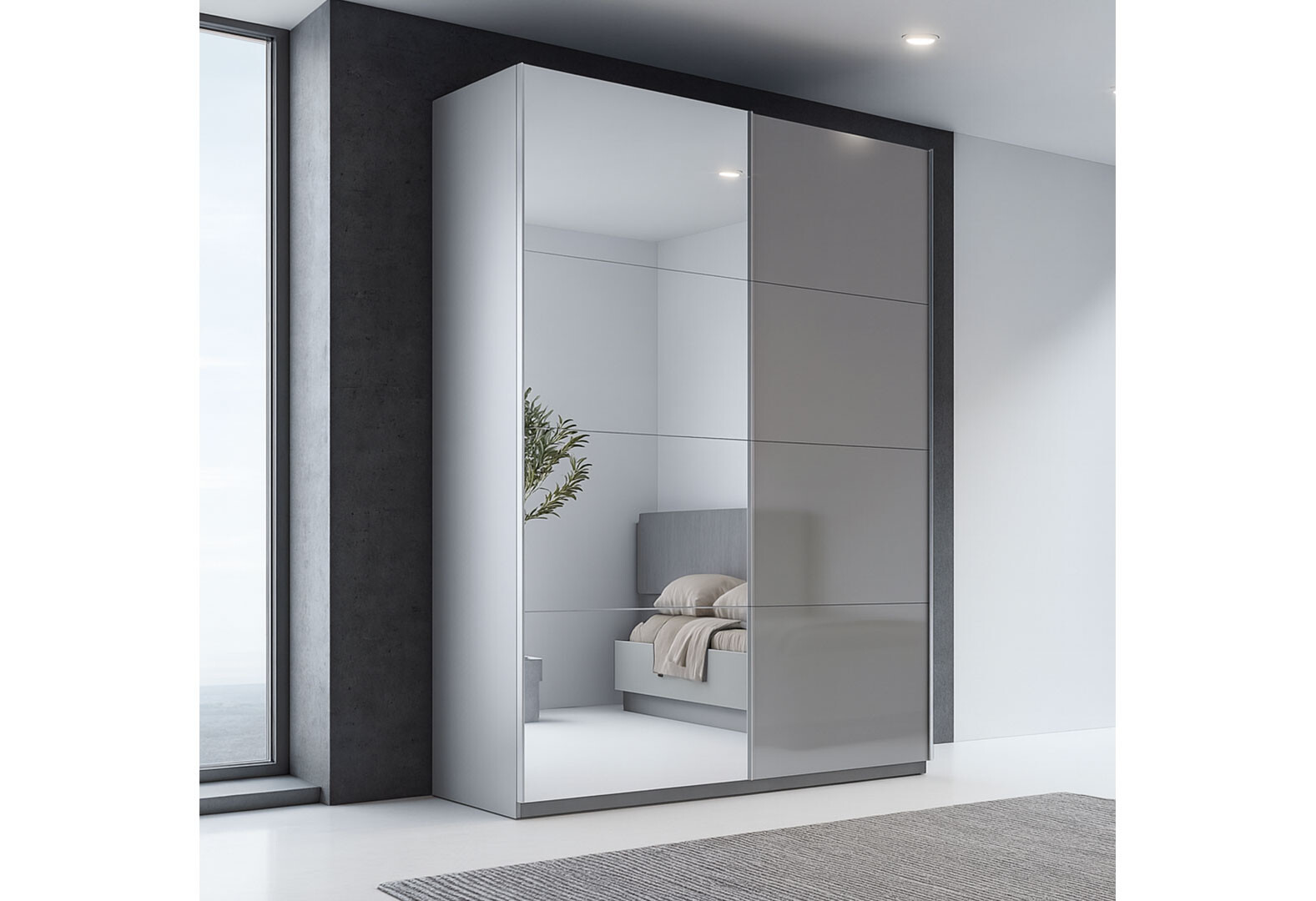 Шафа-купе MiroMark Мегі / Megy 2-дверна 200х240 см глянець сірий шиншила / дзеркало