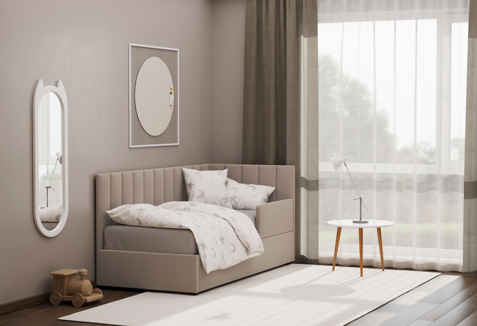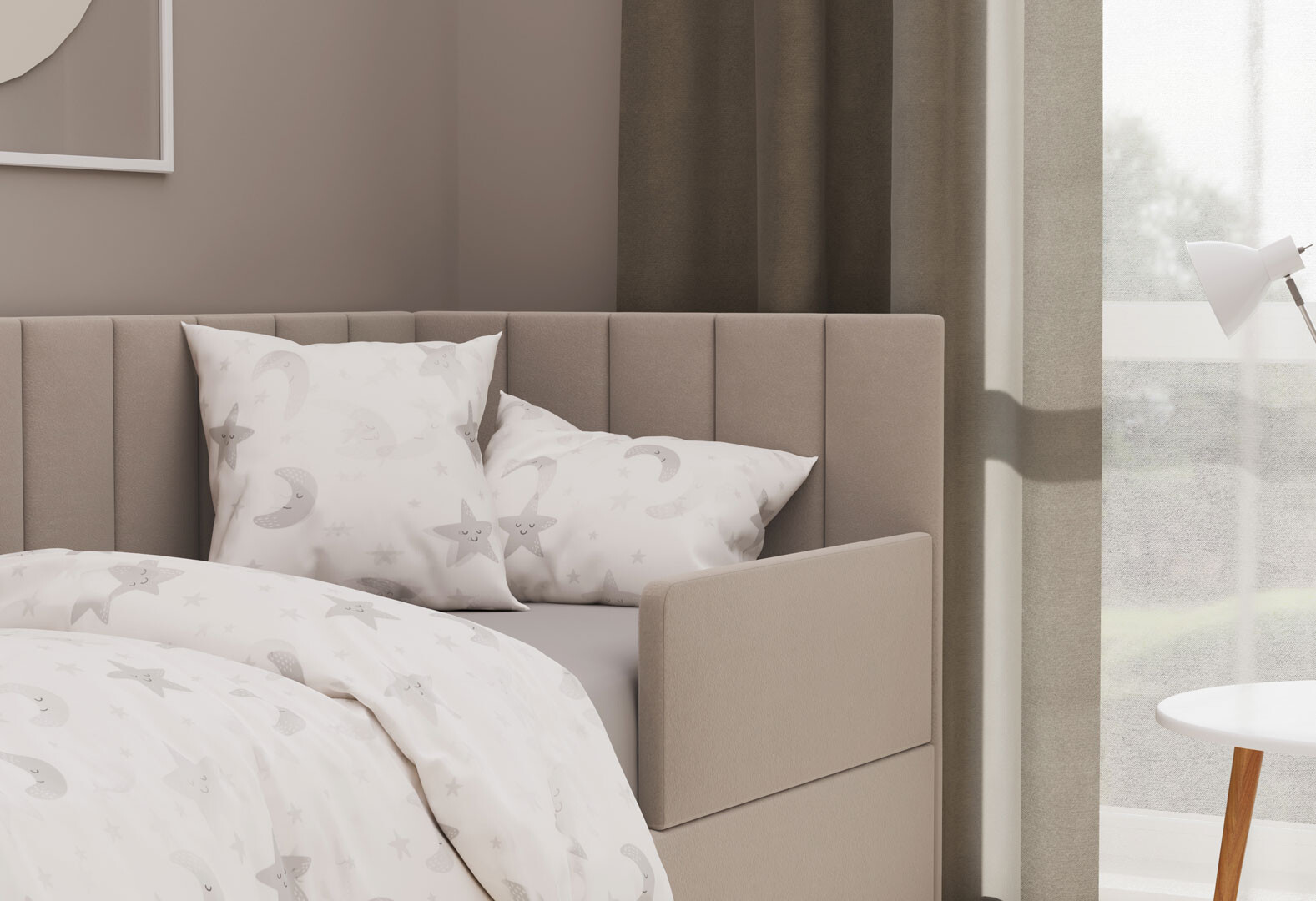 Ліжко-подіум Vika Перлина New 90х200 см підйомне з бортиком, без матрацу, збірка права, бежеве (Zenit 26)