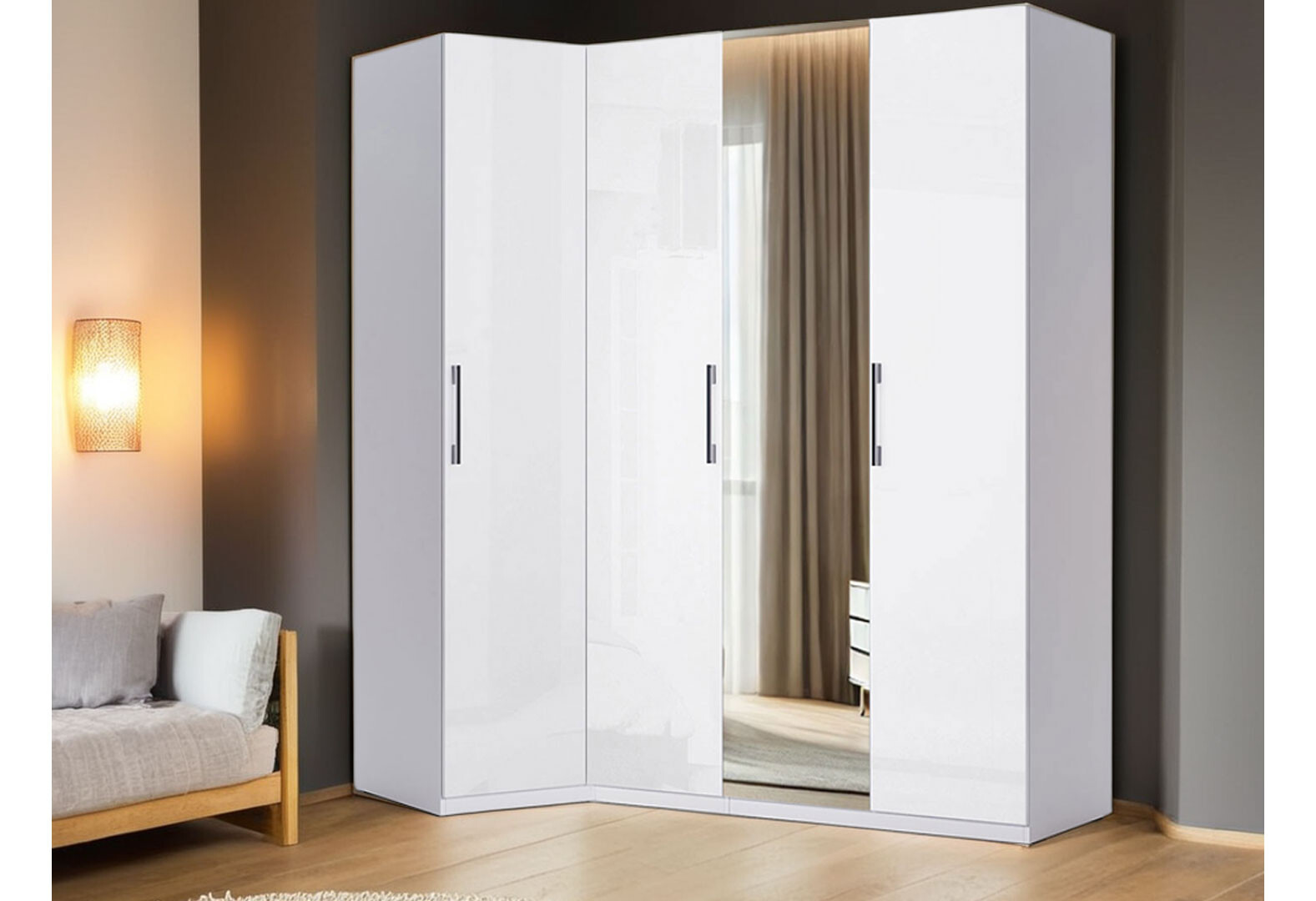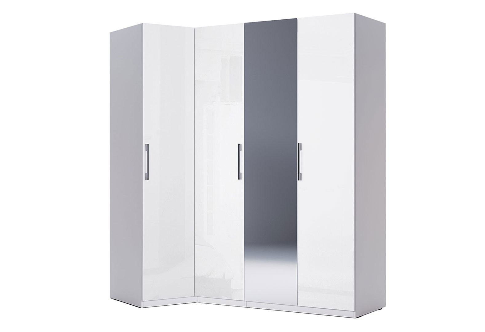 Шафа MiroMark Фемілі кутова 4-дверна з дзеркалом 100х192 см Біла, серія Н