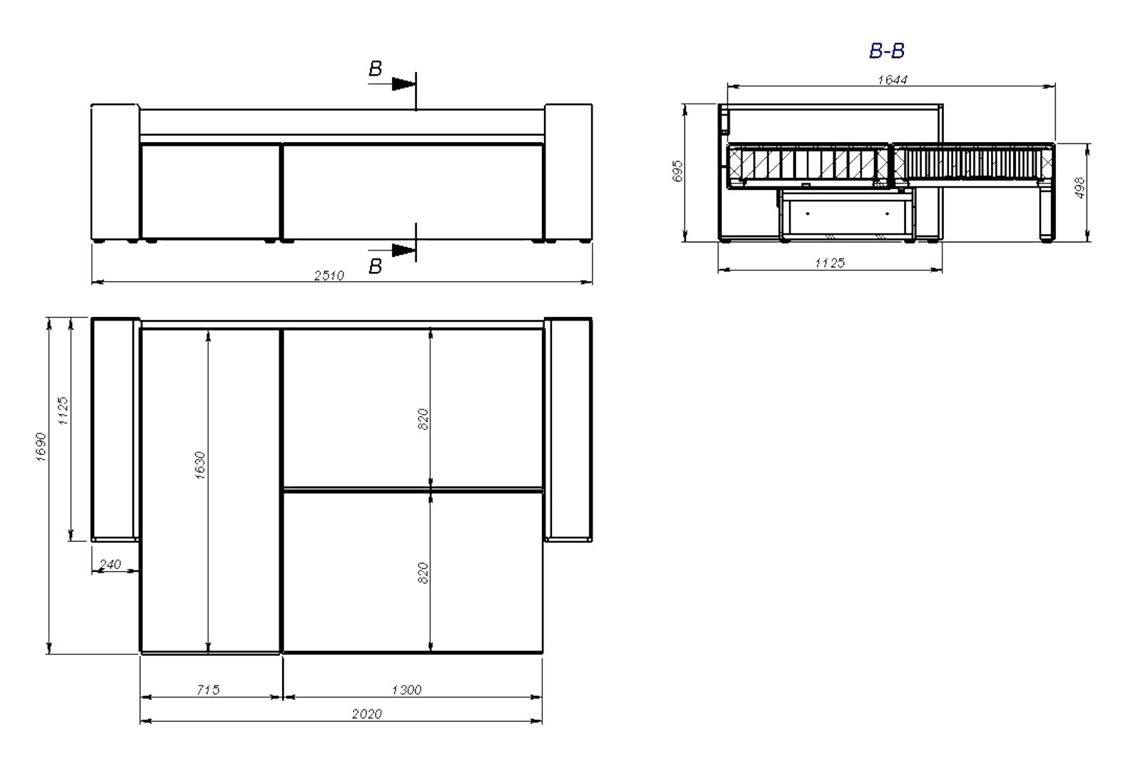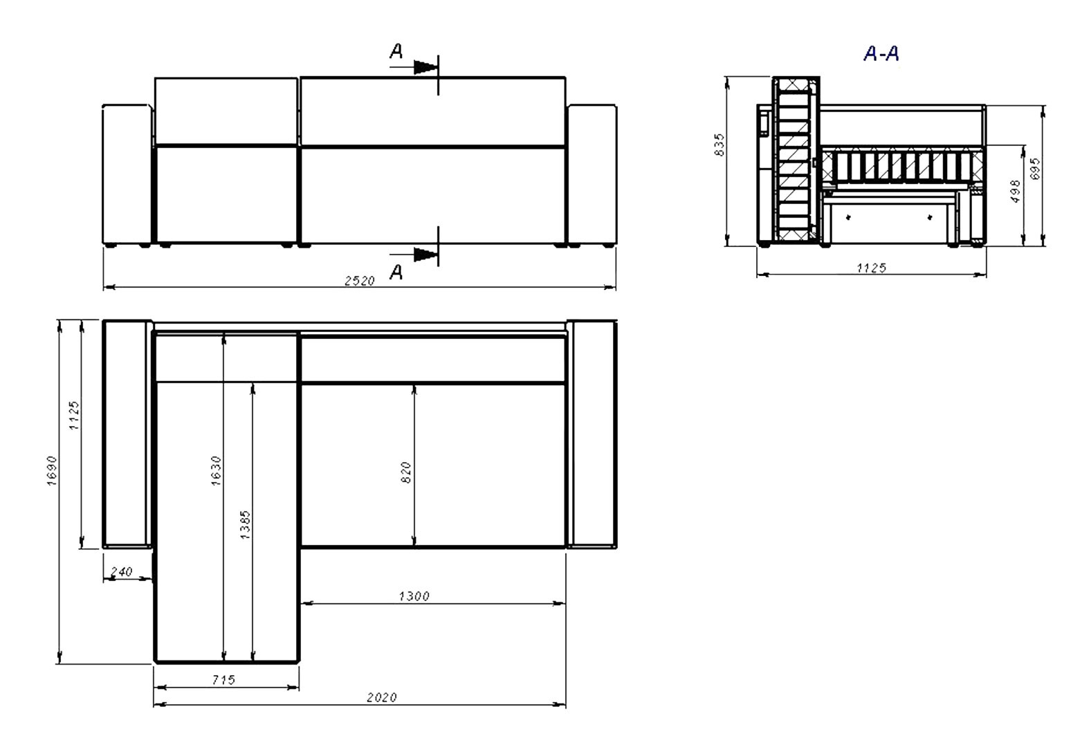 М'який куточок Kredens furniture Фрейм 252х169 см, тканина сіра