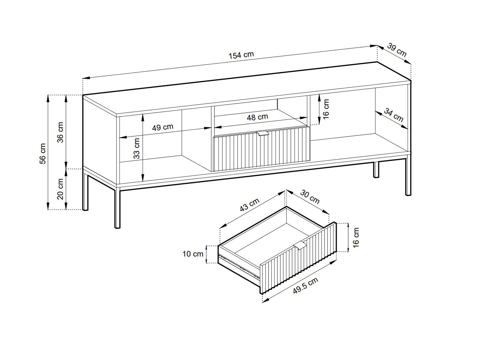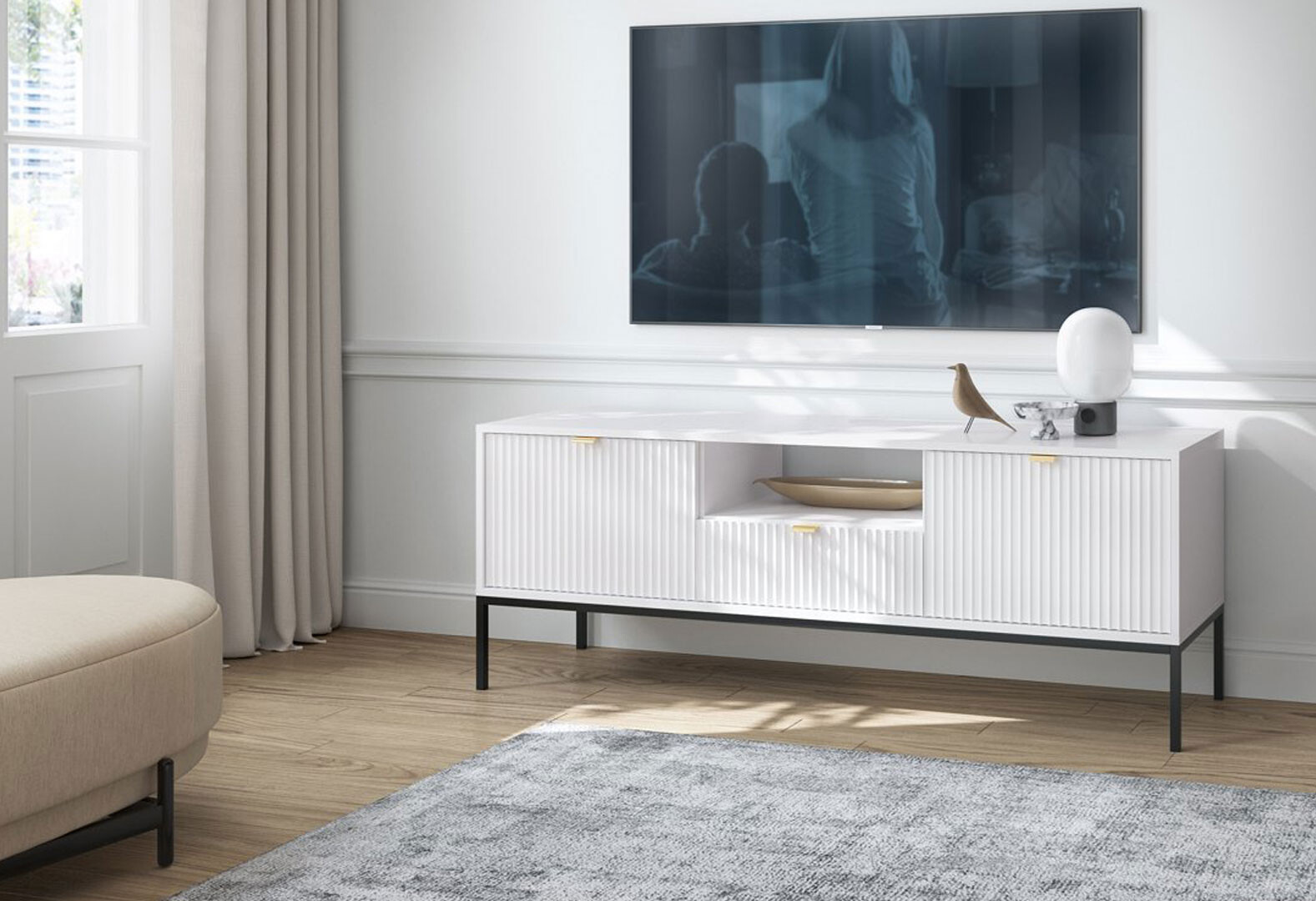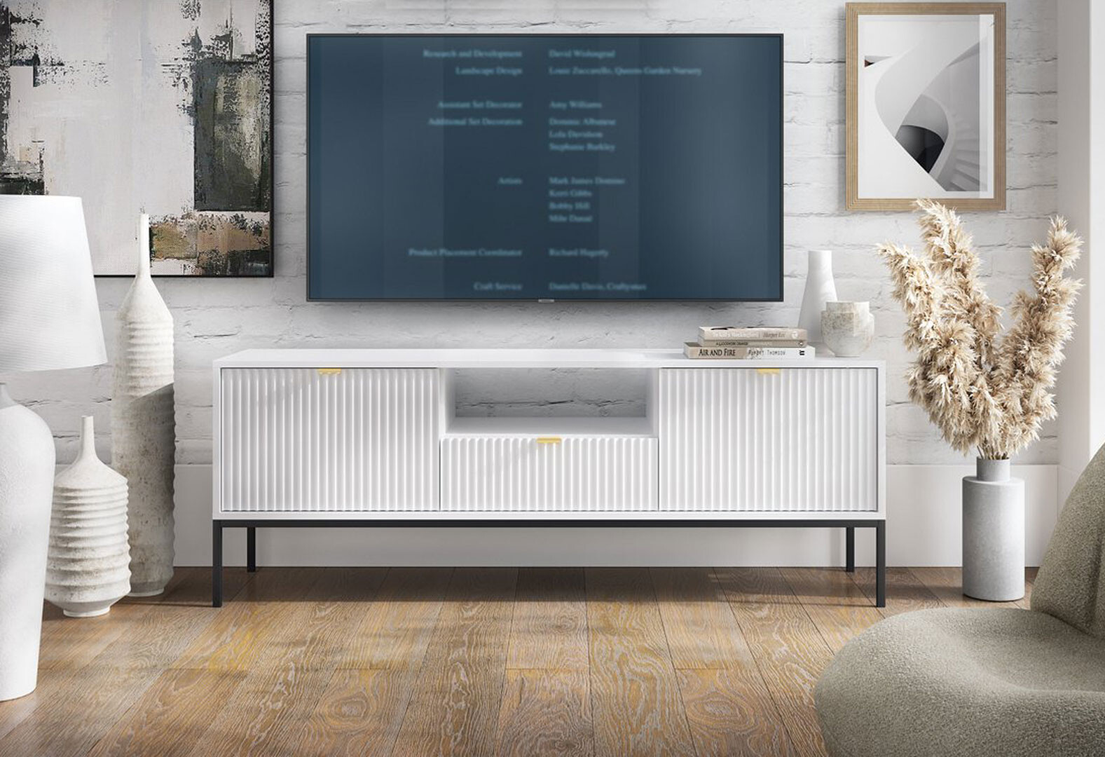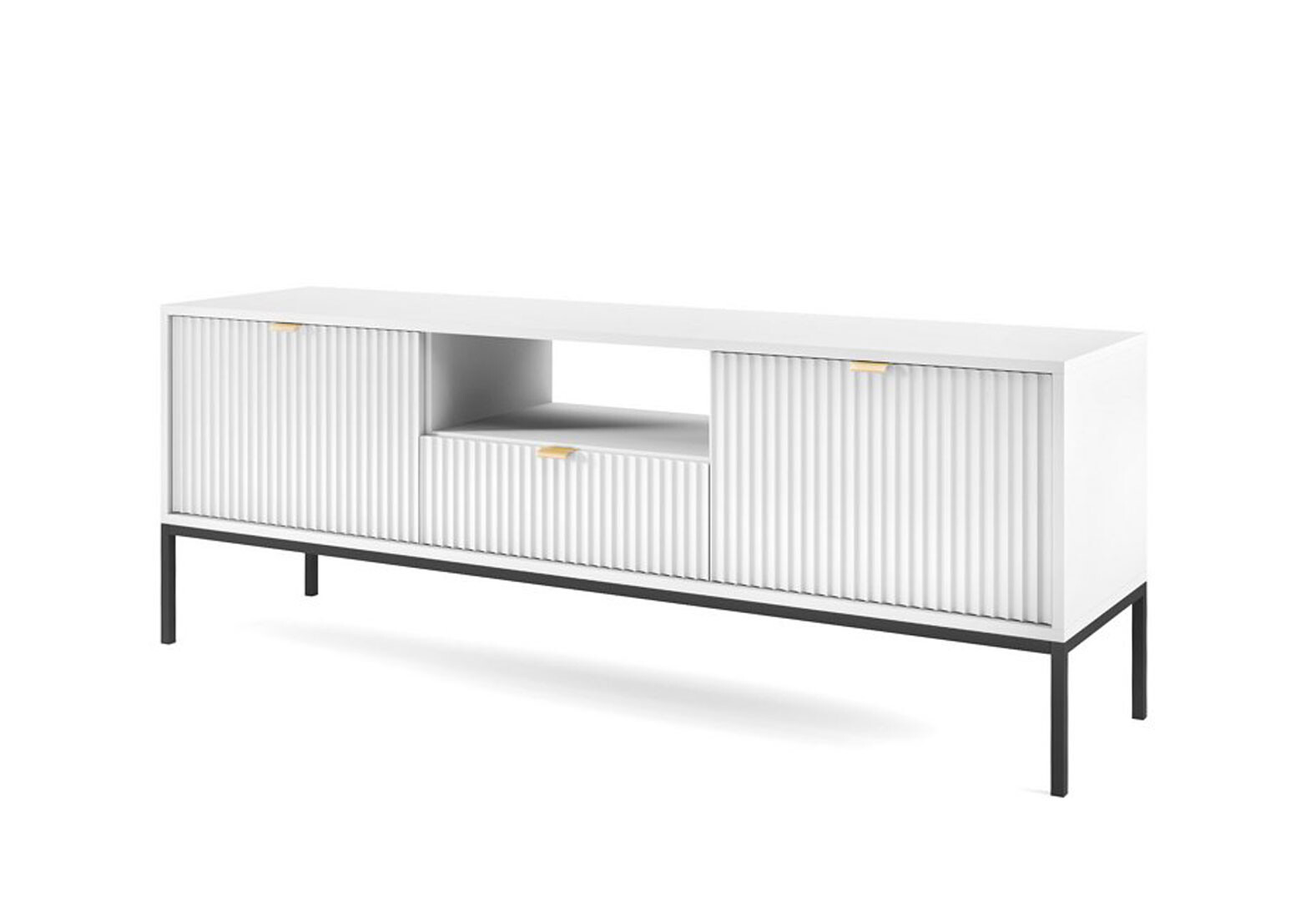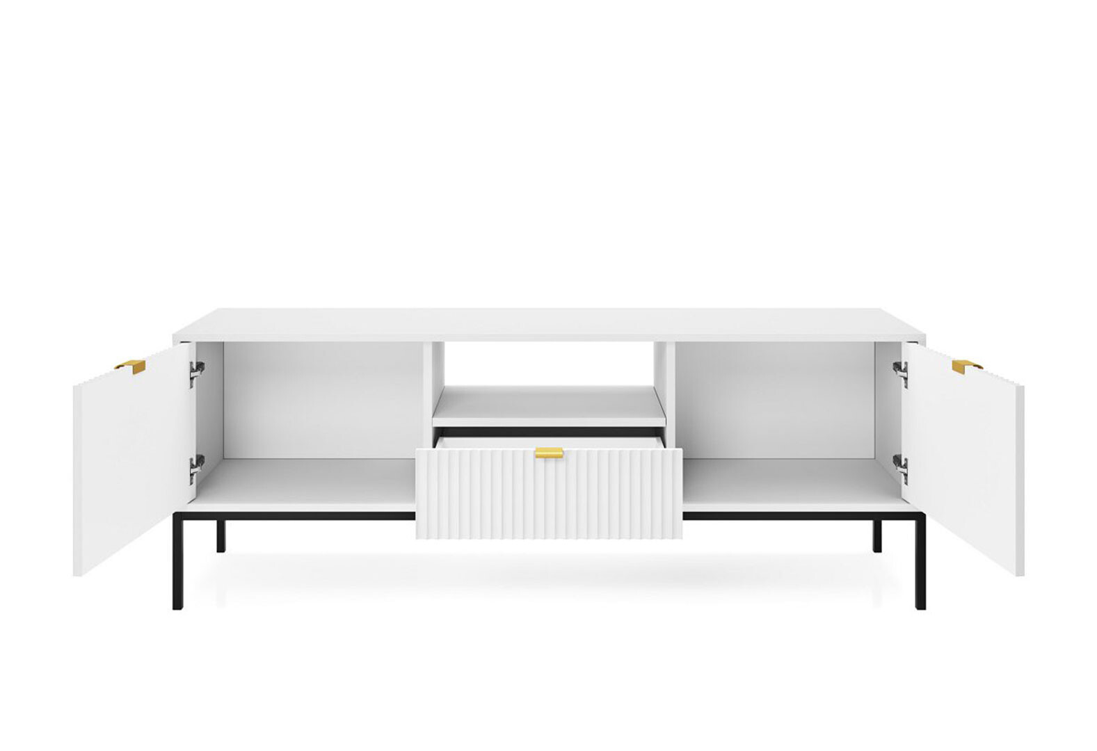 - Тумба під ТВ Perfect Home Нова / Nova з 2 дверками, шухлядою та поличкою 154 см, білий, чорні ніжки