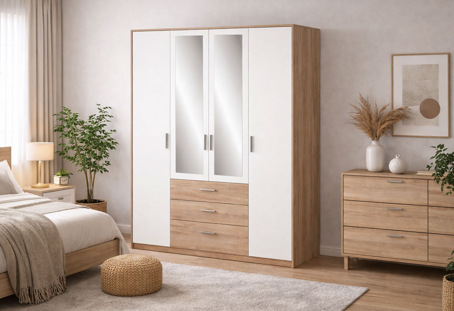 Шафа VMV holding Ріко 4-дверна з 3 шухлядами 180 см Дуб сонома /Білий