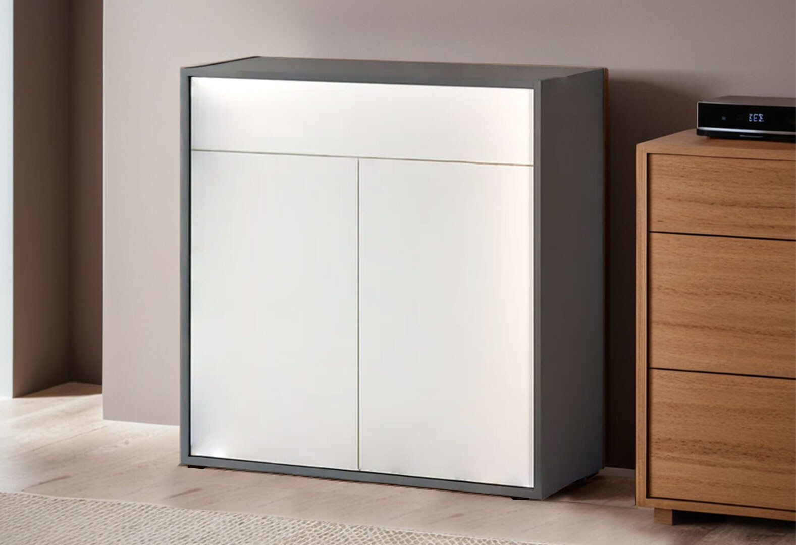 - Комод VMV holding Алекс 2-дверний з шухлядою без ручок 84 см Сіро-білий