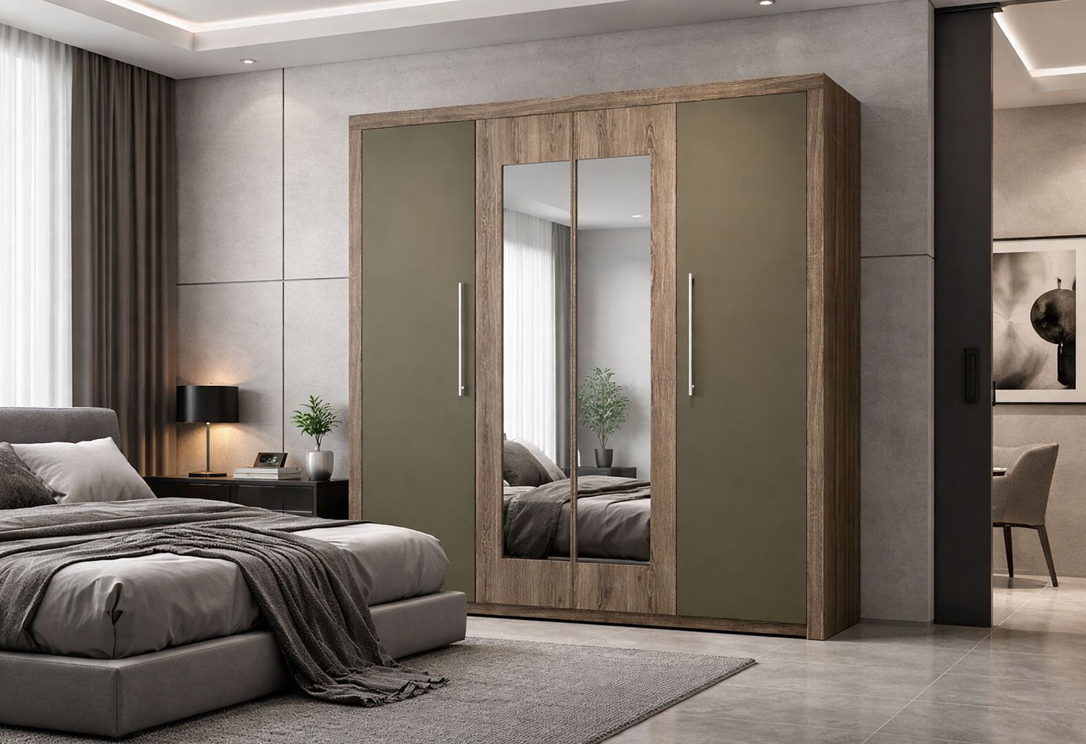 Шафа VMV holding Джульєта 4-дверна з дзеркалом 239 см Дуб арканзас темний/Бронза