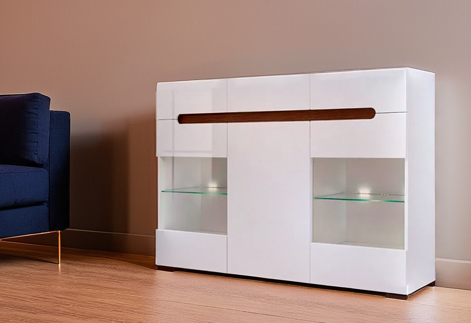 Комод ВМК Ацтека (Амелія) 1-дверний з 3 шухлядами та підсвіткою 150 см Білий