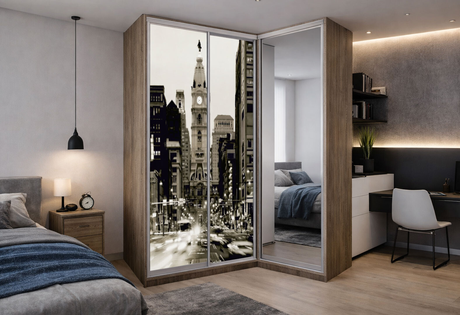 Шафа-купе кутова VIP-master (AL) 3-дверна з дзеркалом 181 см