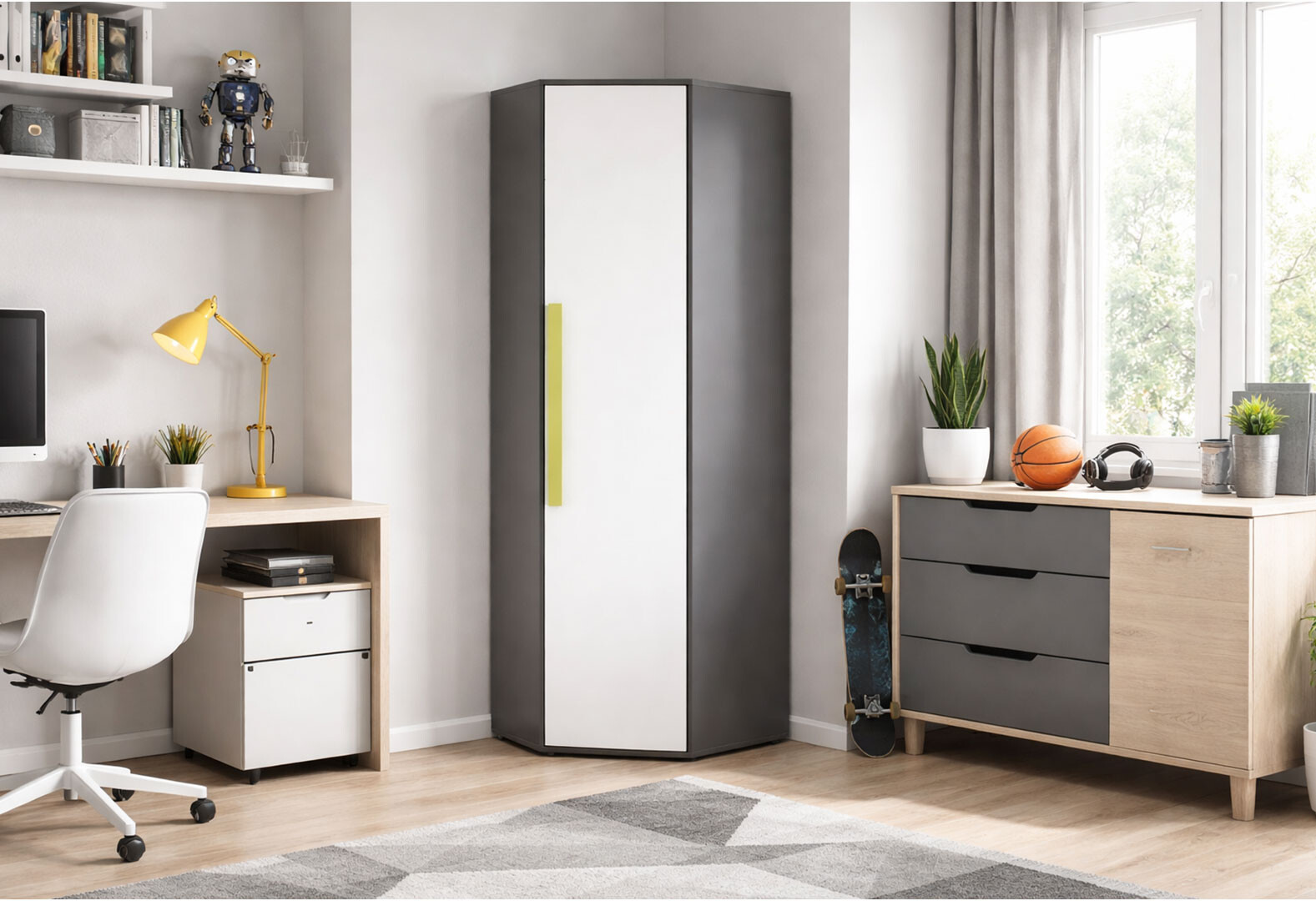 - Шафа кутова VMV holding Алекс 1-дверна 71 см Сіро-біла