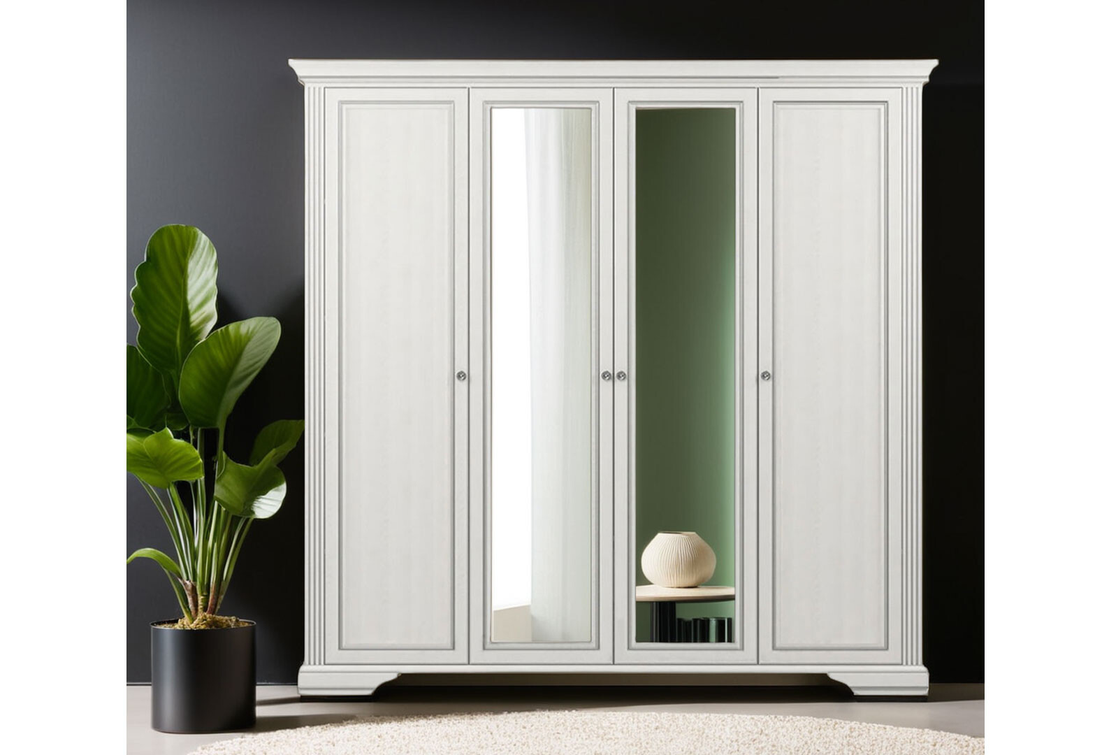 - Шафа Гербор Вайт 4-дверна з дзеркалом 227 см сосна срібна