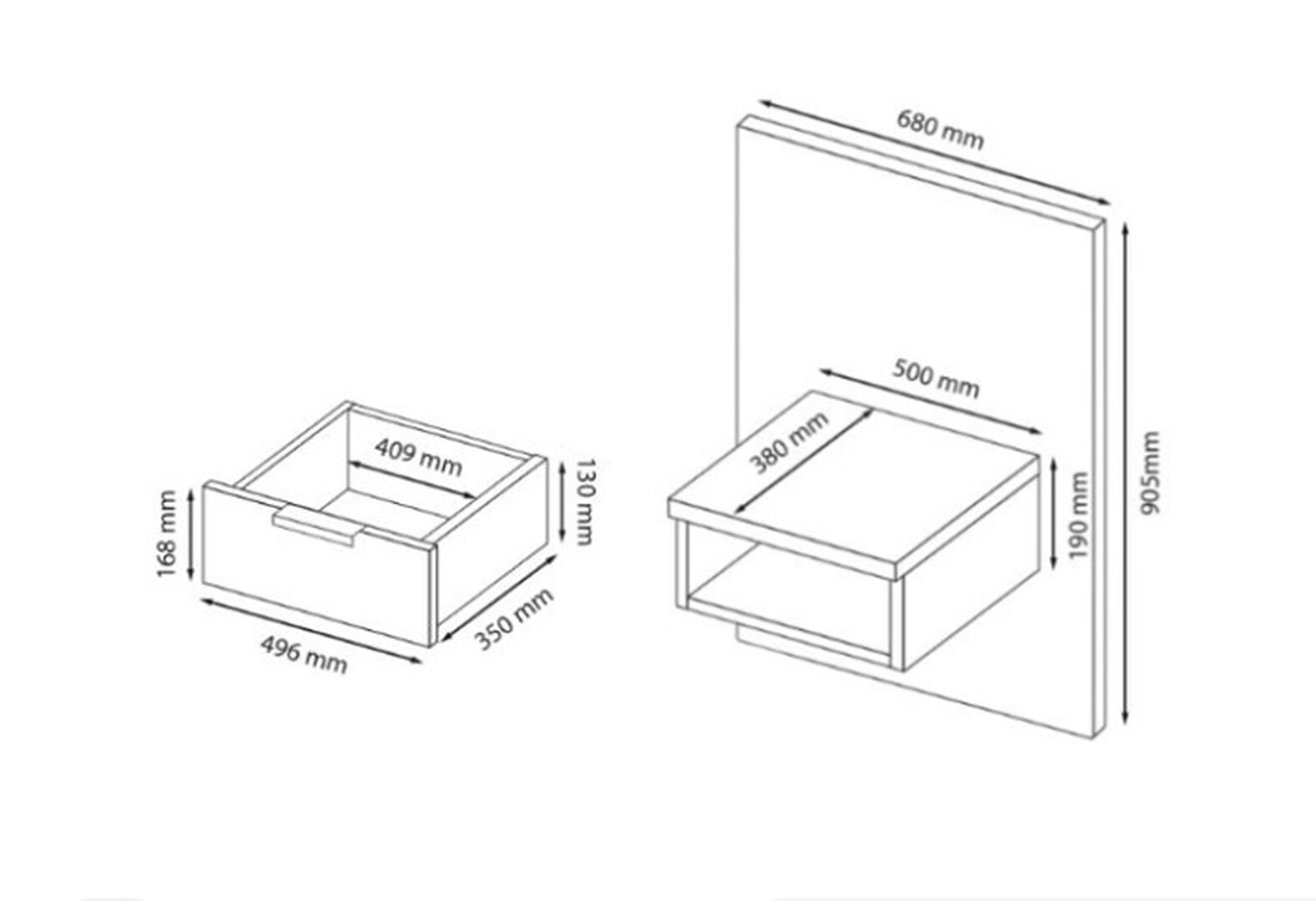 - Тумби приліжкові (2шт) MiroMark Луна підвісні з шухлядою 58 см Лава/Дуб Крафт