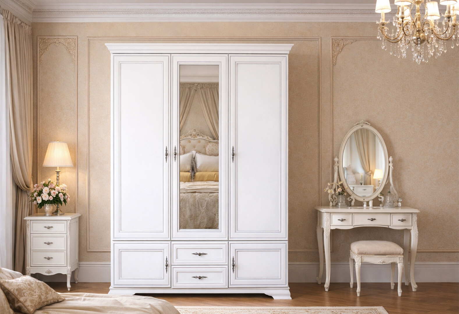 - Шафа ВМК Кентукі 5-дверна з 2 шухлядами та дзеркалом 160 см Біла