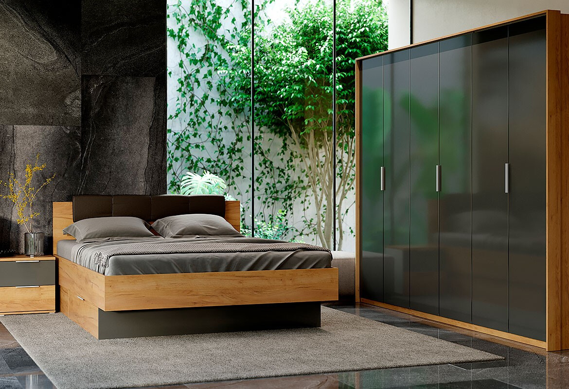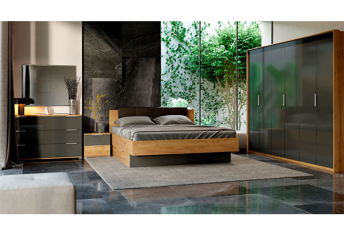Спальня MiroMark Луна з 6 дверима, 160 Дуб крафт / Мат Лава