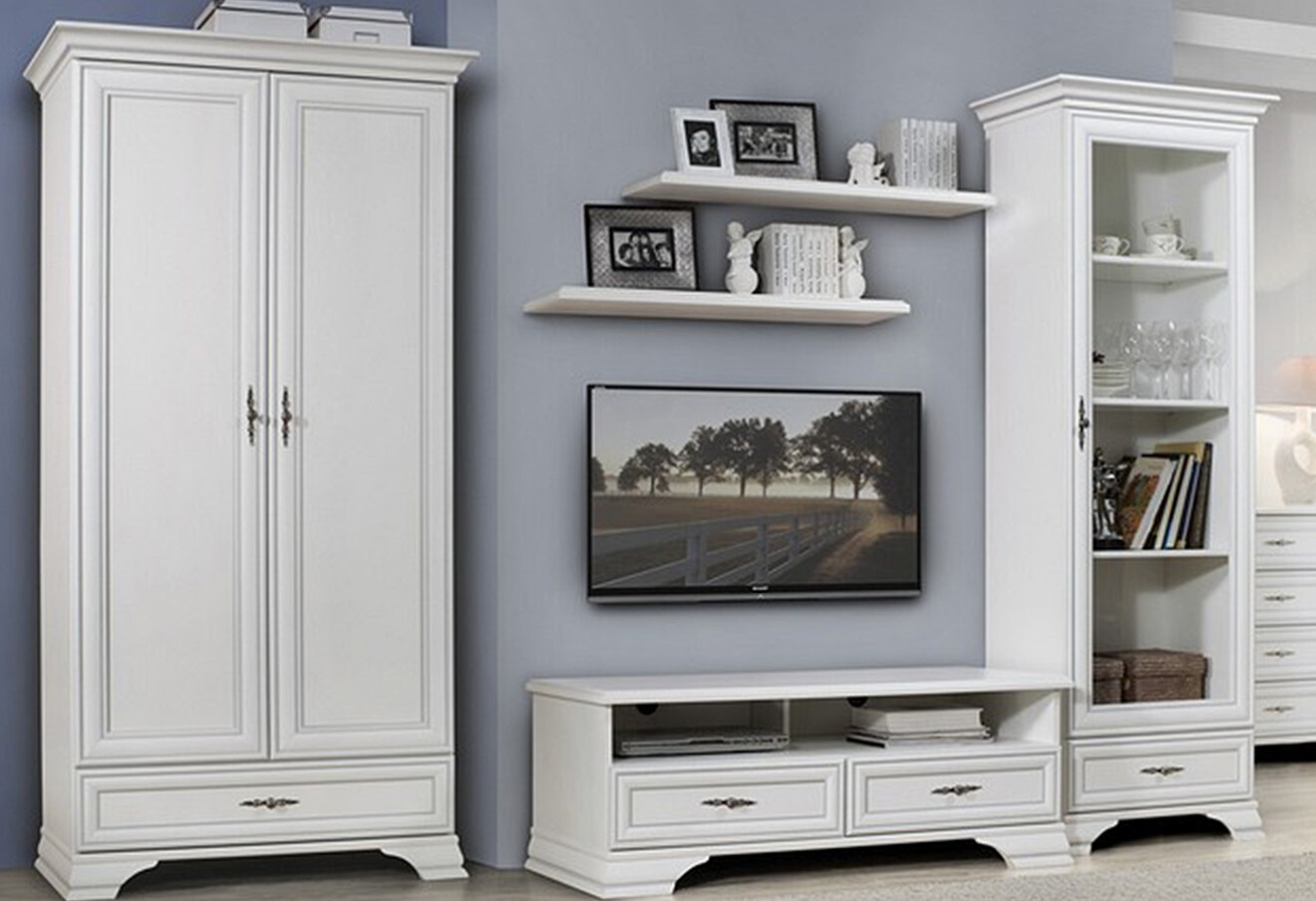 - Комплект стінка з вітриною та шафою ВМК Кентукі 388 см Білий