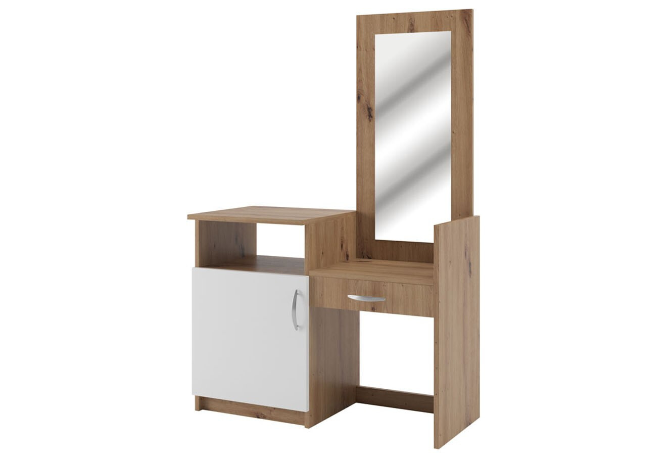 Стіл туалетний Світ Меблів Кім New з тумбою, шухлядою та дзеркалом 93 см Дуб артизан/Білий