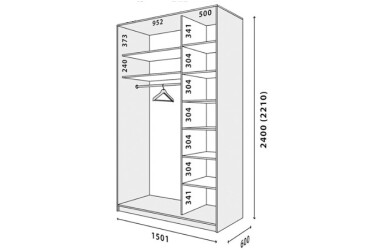 Кожна шафа–купе має кілька габаритних розмірів, внутрішнього наповнення, фасадів, декорів ДСП.