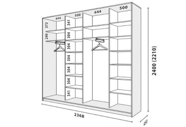 Шафи–купе фабрики VIP-master можуть бути заввишки 220 см і 240 см, а також глибиною 45 см і 60 см.