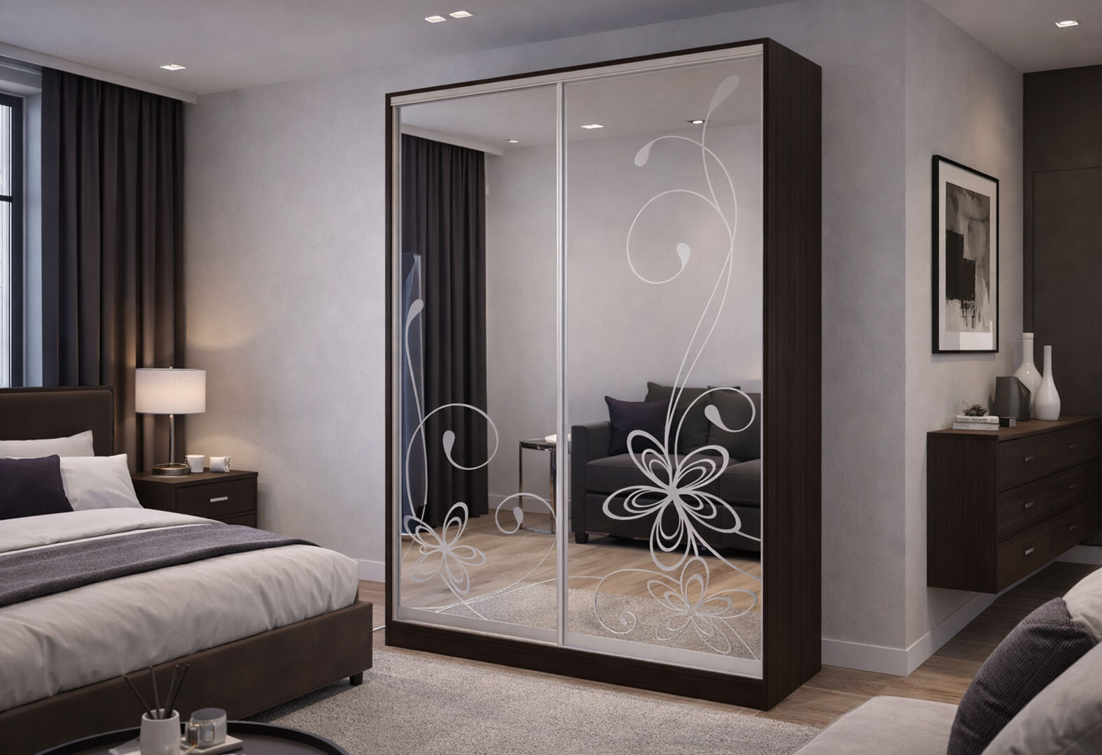 - Шафа-купе Київський стандарт 2-дверна з худ.матуванням 180x240x60 см
