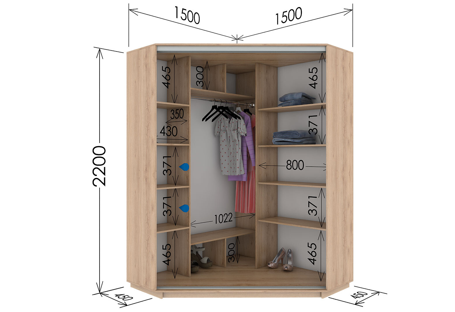 Шафа-купе кутова Garant 2-дверна 150x220x150 см